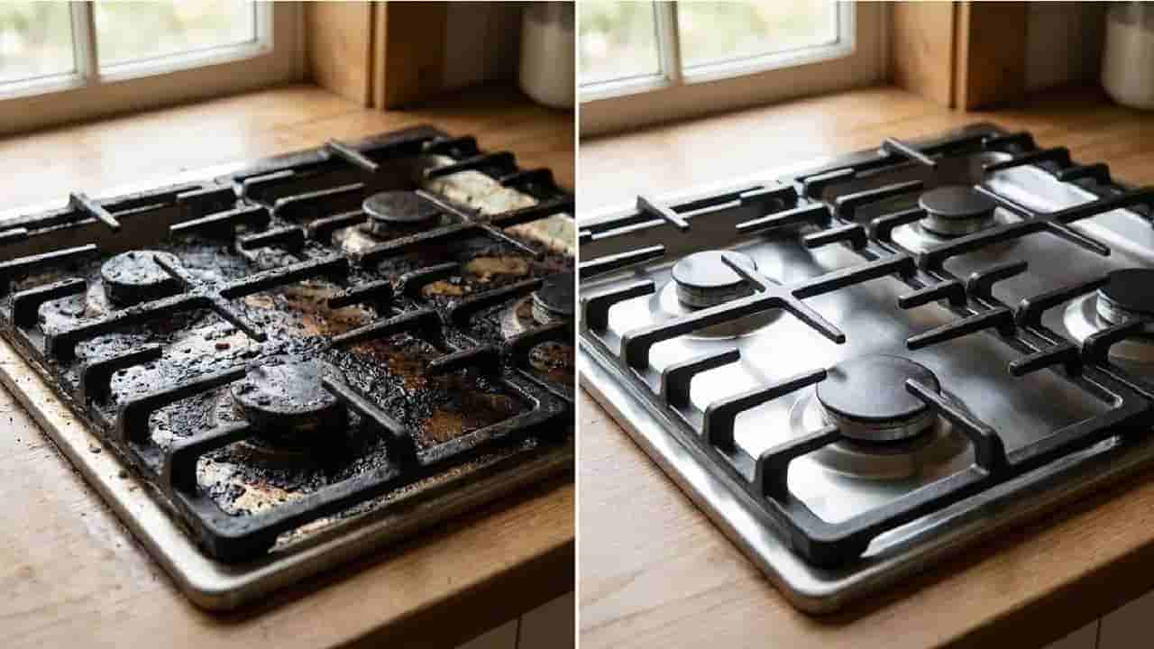 ವಿನೆಗರ್ ಮತ್ತು ಬೇಕಿಂಗ್ ಸೋಡಾ : ಈ ಪರಿಹಾರವು ಭಾರೀ ಕೊಳೆ ಮತ್ತು ಮಸಿ ಕಲೆಗಳನ್ನು ಹೋಗಲಾಡಿಸಲು ಉತ್ತಮವಾಗಿದೆ. ಇದಕ್ಕಾಗಿ ಒಂದು ಪಾತ್ರೆಗೆ ಸಮಾನ ಪ್ರಮಾಣದಲ್ಲಿ ನೀರು ಮತ್ತು ವಿನೆಗರ್ ಸೇರಿಸಿ. ಅದರಲ್ಲಿ ಬರ್ನರ್ ಹಾಕಿ ರಾತ್ರಿಯಿಡೀ ಅಥವಾ ಕನಿಷ್ಠ 2-3 ಗಂಟೆಗಳ ಕಾಲ ನೆನೆಸಿಡಿ. ಬಳಿಕ ಅದರ ಮೇಲೆ ಸ್ವಲ್ಪ ಅಡಿಗೆ ಸೋಡಾ ಸಿಂಪಡಿಸಿ ಮತ್ತು ಹಳೆಯ ಟೂತ್ ಬ್ರಷ್ನಿಂದ ಸ್ಕ್ರಬ್ ಮಾಡಿ. ಇದು ಈಸಿಯಾಗಿ ಕಲೆಗಳನ್ನು ನಿವಾರಿಸುತ್ತವೆ.