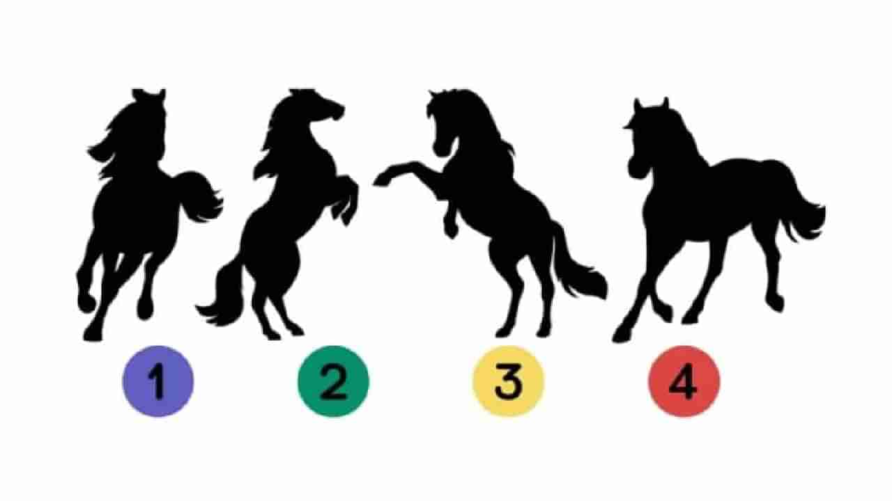 ಈ ಮೇಲಿನ ಚಿತ್ರದಲ್ಲಿ ಬೇರೆ ಬೇರೆ ಭಂಗಿಯಲ್ಲಿ ನಿಂತಿರುವ ನಾಲ್ಕು ಕುದುರೆಗಳಿವೆ. ಆ ನಾಲ್ಕು ಕುದುರೆಗಳಲ್ಲಿ ನಿಮ್ಮಿಷ್ಟದ ಒಂದು ಕುದುರೆಯನ್ನು ಆಯ್ಕೆ ಮಾಡಿ ಮತ್ತು ಆ ಮೂಲಕ ನಿಮ್ಮ ಗುಣ ಸ್ವಭಾವ, ನಿಮ್ಮ ವ್ಯಕ್ತಿತ್ವದ ಅಂಶಗಳು ಹೇಗಿದೆಯೆಂದು ತಿಳಿಯಿರಿ.