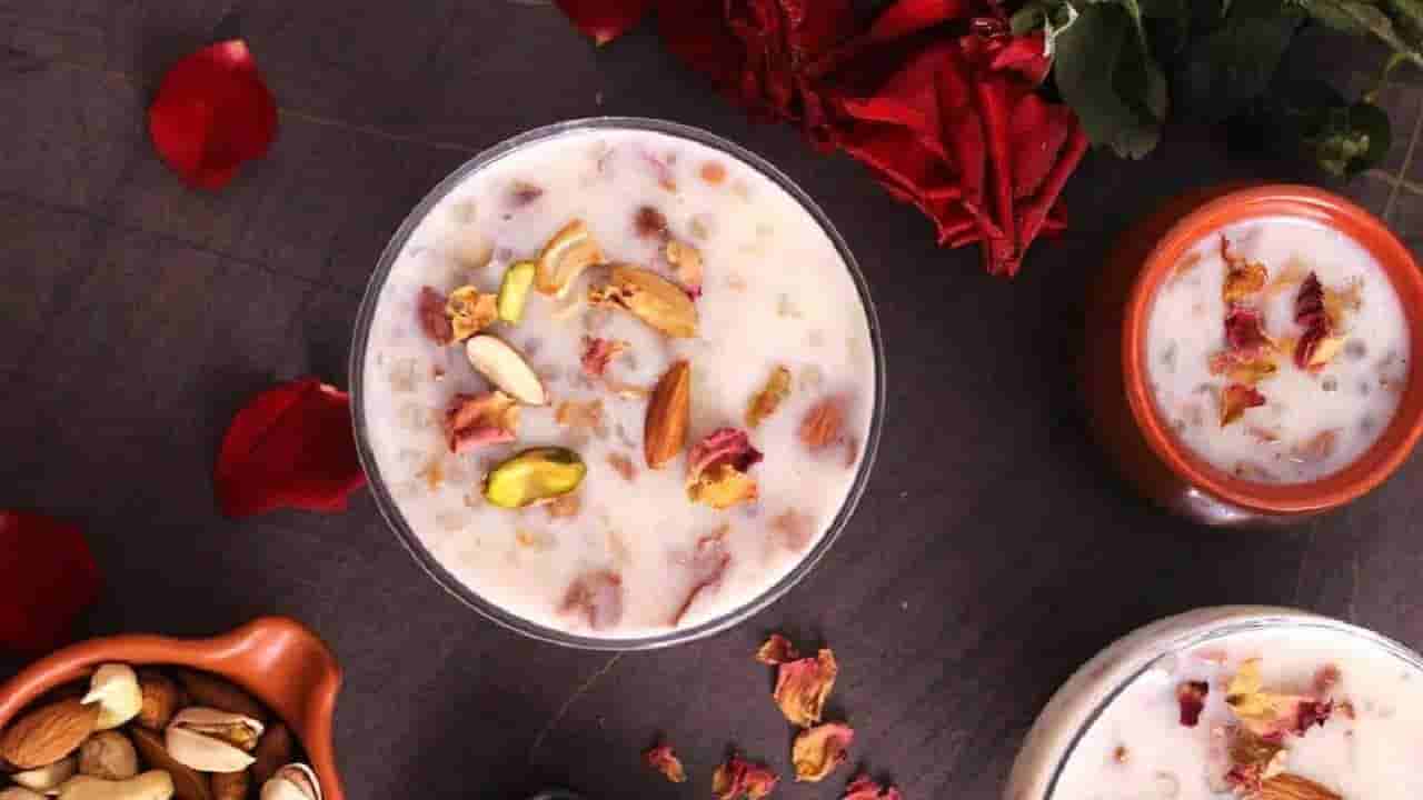 ಬೇಕಾಗುವ ಸಾಮಾಗ್ರಿಗಳು: ಹಾಲು, ಗುಲಾಬಿ ದಳ, ಏಲಕ್ಕಿ ಪುಡಿ, ಸಕ್ಕರೆ, ಪಿಸ್ತಾ, ಬಾದಾಮಿ.