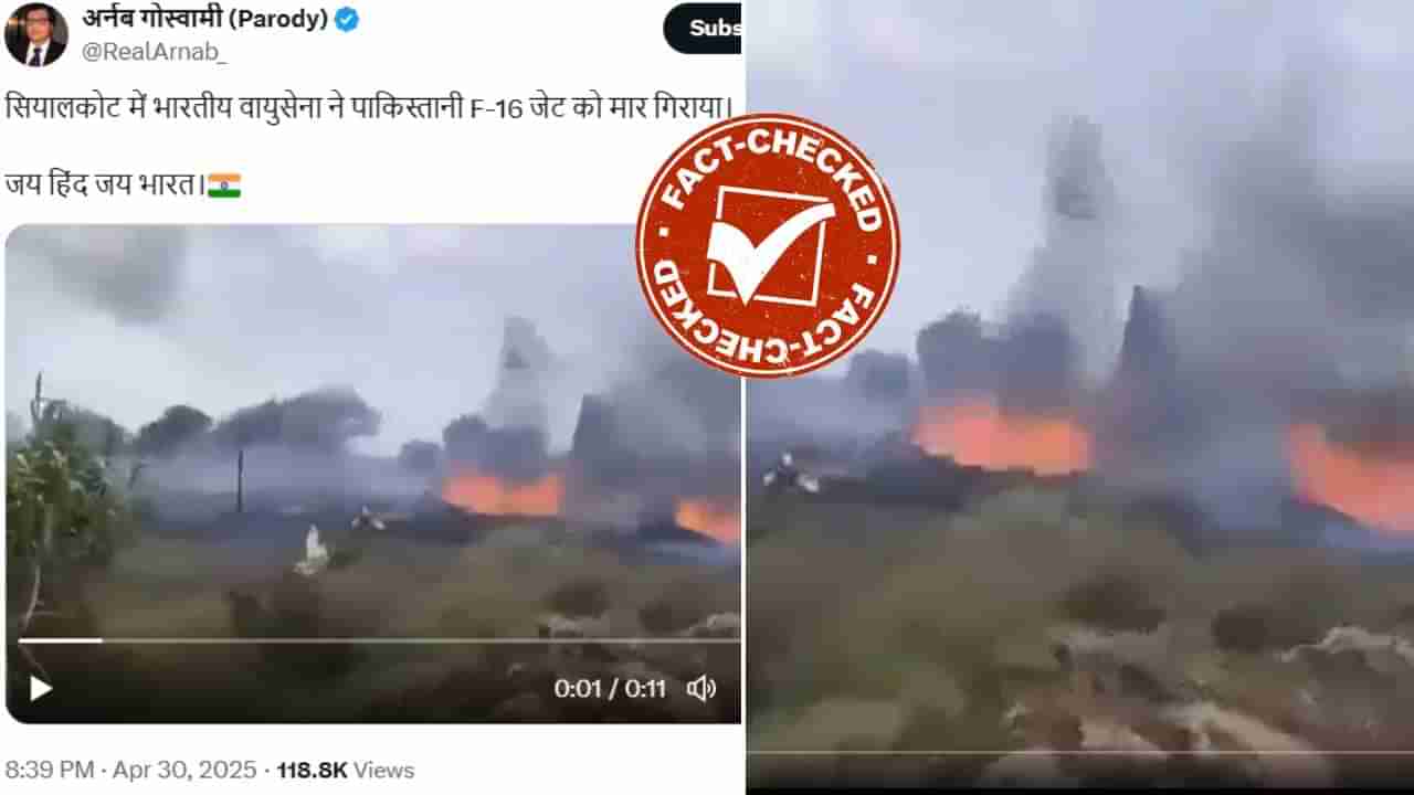 ಭಾರತದ ಎಕ್ಸ್ ಬಳಕೆದಾರರೊಬ್ಬರು ಈ ವಿಡಿಯೋವನ್ನು ಹಂಚಿಕೊಂಡು, ಭಾರತೀಯ ವಾಯುಪಡೆಯು ಸಿಯಾಲ್ಕೋಟ್ನಲ್ಲಿ ಪಾಕಿಸ್ತಾನದ ಎಫ್ -16 ಜೆಟ್ ಅನ್ನು ಹೊಡೆದುರುಳಿಸಿದೆ ಎಂದು ಹೇಳುತ್ತಿದ್ದಾರೆ.
