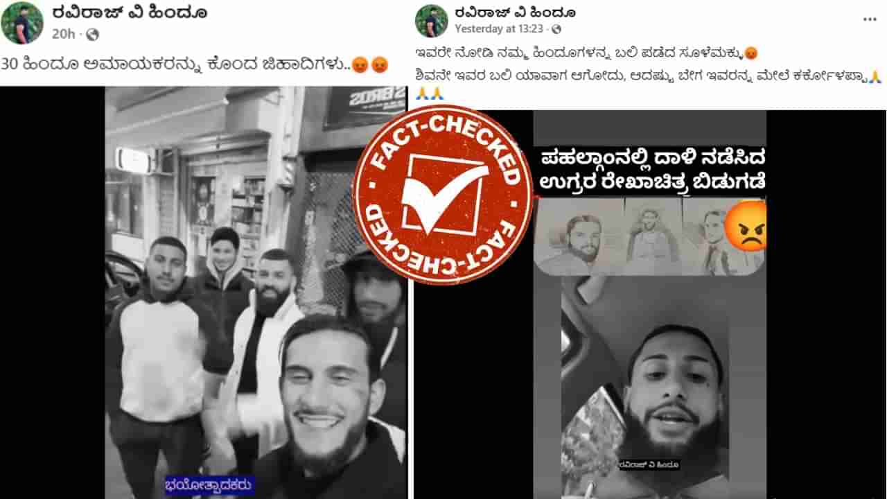 ಬೆಂಗಳೂರು (ಏ. 25): ಪಹಲ್ಗಾಮ್ನಲ್ಲಿ ನಡೆದ ಭೀಕರ ಗುಂಡಿನ ದಾಳಿಯಲ್ಲಿ (Pahalgam Terrorists Attack) ಕನಿಷ್ಠ 26 ಪ್ರವಾಸಿಗರು ಸಾವನ್ನಪ್ಪಿದ ದುರಂತ ಘಟನೆಯ ನಂತರ ಸಾಮಾಜಿಕ ಜಾಲತಾಣಗಳಲ್ಲಿ ಅನೇಕ ವಿಡಿಯೋಗಳು ಹರಿದಾಡುತ್ತಿವೆ. ಇದೀಗ ಐದು ಜನ ಯುವಕರು ಕಾರಿನಲ್ಲಿ ಪ್ರಯಾಣಿಸುತ್ತಿರುವ ವಿಡಿಯೋ ಫೇಸ್ಬುಕ್, ಇನ್ಸ್ಟಾಗ್ರಾಮ್ನಲ್ಲಿ ವೈರಲ್ ಆಗುತ್ತಿದೆ. ಈ ವಿಡಿಯೋದಲ್ಲಿ, ಯುವಕರು ಅಸ್ಸಲಾಂ ಅಲೈಕುಮ್ ಎಂದು ಹೇಳುವುದನ್ನು ಕೇಳಬಹುದು. ಈ ಐದು ಜನ ಜಮ್ಮು ಮತ್ತು ಕಾಶ್ಮೀರದ ಪಹಲ್ಗಾಮ್ನಲ್ಲಿ ಪ್ರವಾಸಿಗರ ಮೇಲೆ ಗುಂಡು ಹಾರಿಸಿದ ಭಯೋತ್ಪಾದಕರು ಎಂದು ಸಾಮಾಜಿಕ ಮಾಧ್ಯಮ ಬಳಕೆದಾರರು ಹೇಳುತ್ತಿದ್ದಾರೆ.
