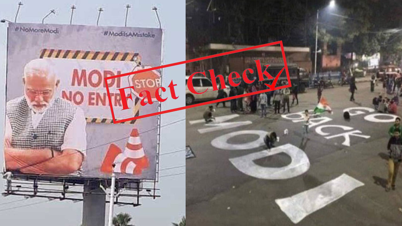 ಪ್ರಧಾನಿ ನರೇಂದ್ರ ಮೋದಿಯವರ (Narendra Modi) ರಾಜಸ್ಥಾನ (Rajasthan) ಭೇಟಿಯ ಸಂದರ್ಭದಲ್ಲಿ ‘ಗೋ ಬ್ಯಾಕ್ ಮೋದಿ’ ಎಂದು ರಸ್ತೆಯಲ್ಲಿ ಬರೆದಿರುವ ಫೋಟೊವೊಂದು ವೈರಲ್ ಆಗಿದೆ. ಮೇ 31 ರಂದು ರಾಜಸ್ಥಾನದ ಅಜ್ಮೇರ್ಗೆ (Ajmer) ಪ್ರಧಾನಿ ನರೇಂದ್ರ ಮೋದಿ ಅವರ ಭೇಟಿಯನ್ನು ಪ್ರತಿಭಟಿಸುತ್ತಿರುವ ಜನರು ರಸ್ತೆಯಲ್ಲಿ ‘ಗೋ ಬ್ಯಾಕ್ ಮೋದಿ’ ಎಂದು ಬರೆದು ಪ್ರತಿಭಟಿಸಿರುವುದು ಎಂಬ ಪೋಸ್ಟ್ಗಳೊಂದಿಗೆ ಈ ಫೋಟೊ ಸಾಮಾಜಿಕ ಮಾಧ್ಯಮಗಳಲ್ಲಿ ವೈರಲ್ ಆಗಿದೆ. ಆದರೆ ಈ ಫೋಟೊ ಹಳೇದು. 2021 ರ ಪಶ್ಚಿಮ ಬಂಗಾಳ ವಿಧಾನಸಭಾ ಚುನಾವಣೆಗೆ ಮೊದಲು ಮೋದಿ ರಾಜ್ಯಕ್ಕೆ ಭೇಟಿ ನೀಡಿದಾಗ, ನಗರದ ಎಸ್ಪ್ಲೇನೇಡ್ ಪ್ರದೇಶದಲ್ಲಿ CAA ವಿರೋಧಿ ಪ್ರತಿಭಟನೆಗಳು ಭುಗಿಲೆದ್ದಿತ್ತು. ಆ ವೇಳೆ ಪಶ್ಚಿಮ ಬಂಗಾಳದ ಕೋಲ್ಕತ್ತಾದಲ್ಲಿ ಈ ರೀತಿ ಪ್ರತಿಭಟನೆಯ ದನಿ ಕಾಣಿಸಿಕೊಂಡಿತ್ತು.