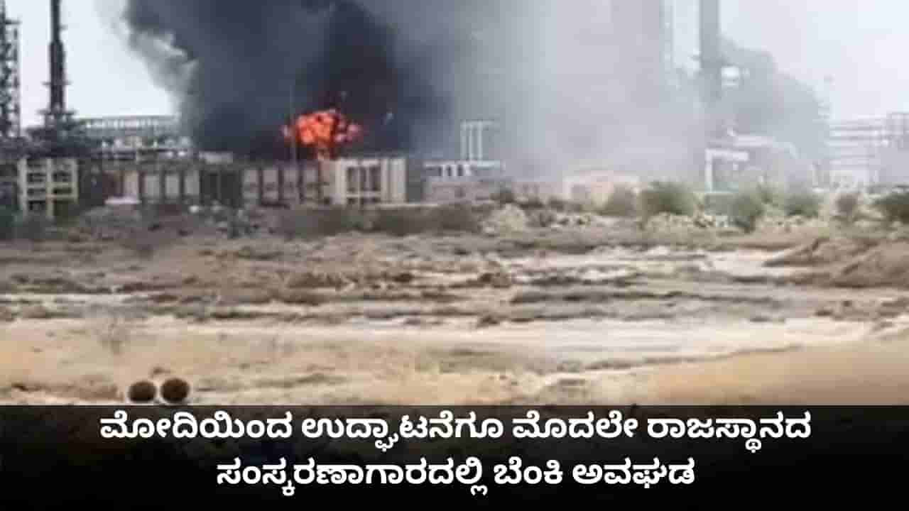 ನವದೆಹಲಿ, ಏಪ್ರಿಲ್ 20: ಪ್ರಧಾನಿ ಮೋದಿ (PM Modi) ಅವರು ರಾಜಸ್ಥಾನದ ಬಲೋತ್ರಾದಲ್ಲಿ ಭಾರತದ ಮೊದಲ ಸಮಗ್ರ ಸಂಸ್ಕರಣಾಗಾರ-ಪೆಟ್ರೋಕೆಮಿಕಲ್ ಸಂಕೀರ್ಣವನ್ನು ರಾಷ್ಟ್ರಕ್ಕೆ ಅರ್ಪಿಸಲಿದ್ದಾರೆ. ಆದರೆ, ಅದಕ್ಕೂ ಒಂದು ದಿನ ಮೊದಲು ಅಂದರೆ ಇಂದು ಈ ಸಂಸ್ಕರಣಾಗಾರದಲ್ಲಿ ಬೆಂಕಿ ಅವಘಡ ಸಂಭವಿಸಿದೆ. ಭಾರತದ ಮೊದಲ ಗ್ರೀನ್ಫೀಲ್ಡ್ ಇಂಟಿಗ್ರೇಟೆಡ್ ರಿಫೈನರಿ-ಕಮ್-ಪೆಟ್ರೋಕೆಮಿಕಲ್ ಸಂಕೀರ್ಣವನ್ನು ಮಂಗಳವಾರ ಪ್ರಧಾನಿ ನರೇಂದ್ರ ಮೋದಿ ಇಲ್ಲಿ ಅನಾವರಣಗೊಳಿಸಲಿದ್ದಾರೆ. ಈ ಯೋಜನೆಯು 79,450 ಕೋಟಿ ರೂ.ಗಿಂತ ಹೆಚ್ಚಿನ ಹೂಡಿಕೆಯನ್ನು ಒಳಗೊಂಡಿದೆ. ಇದು ಈ ಪ್ರದೇಶದ ಅತಿದೊಡ್ಡ ಕೈಗಾರಿಕಾ ಅಭಿವೃದ್ಧಿಗಳಲ್ಲಿ ಒಂದಾಗಿದೆ.