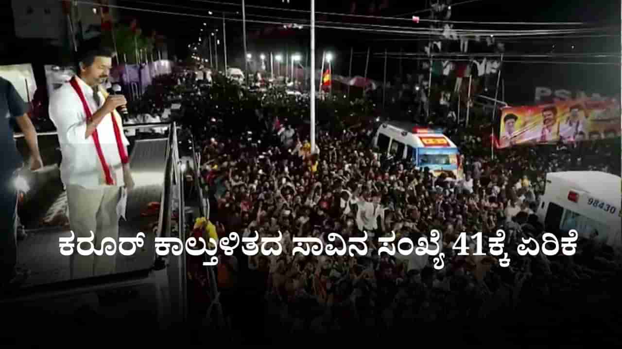 ಚೆನ್ನೈ, ಸೆಪ್ಟೆಂಬರ್ 29: ಸೆಪ್ಟೆಂಬರ್ 27ರಂದು ತಮಿಳುನಾಡಿನ ಕರೂರಿನಲ್ಲಿ (Tamil Nadu Stampede) ನಡೆದ ನಟ-ರಾಜಕಾರಣಿ ವಿಜಯ್ ನೇತೃತ್ವದ ರ್ಯಾಲಿಯಲ್ಲಿ ನಡೆದ ಕಾಲ್ತುಳಿತದಲ್ಲಿ ಮೃತಪಟ್ಟವರ ಸಂಖ್ಯೆ 41ಕ್ಕೆ ಏರಿಕೆಯಾಗಿದೆ. ಆಸ್ಪತ್ರೆಯಲ್ಲಿ ಚಿಕಿತ್ಸೆ ಪಡೆಯುತ್ತಿದ್ದ ಮಹಿಳೆಯೊಬ್ಬರು ಇಂದು (ಸೋಮವಾರ) ಸಾವನ್ನಪ್ಪಿದ್ದಾರೆ. ತೀವ್ರ ನಿಗಾ ಘಟಕದಲ್ಲಿ ವೆಂಟಿಲೇಟರ್ ಬೆಂಬಲದಲ್ಲಿದ್ದ ಕರೂರ್ ಜಿಲ್ಲೆಯ ನಿವಾಸಿ 65 ವರ್ಷದ ಸುಗುಣ ಚಿಕಿತ್ಸೆಗೆ ಸ್ಪಂದಿಸದೆ ನಿಧನರಾಗಿದ್ದಾರೆ.
