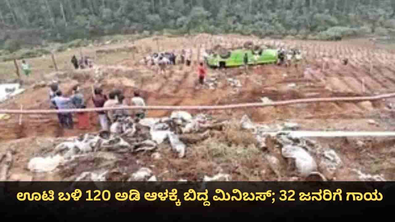 ಊಟಿ, ಜನವರಿ 7: ತಮಿಳುನಾಡಿನ ಊಟಿ ಬಳಿ 120 ಅಡಿ ಕಂದಕಕ್ಕೆ ಮಿನಿ ಬಸ್ ಬಿದ್ದು ಅಪಘಾತಕ್ಕೀಡಾಗಿದೆ. ಈ ಅಪಘಾತದಲ್ಲಿ (Accident) 32 ಜನರು ಗಾಯಗೊಂಡಿದ್ದಾರೆ. ಅವರಲ್ಲಿ 3 ಜನರ ಸ್ಥಿತಿ ಗಂಭೀರವಾಗಿದೆ ಎಂದು ವರದಿಯಾಗಿದೆ. ಈ ಘಟನೆಗೆ ಸಂಬಂಧಿಸಿದಂತೆ ಪೊಲೀಸರು ಪ್ರಕರಣ ದಾಖಲಿಸಿಕೊಂಡು ಸಕ್ರಿಯ ತನಿಖೆ ನಡೆಸುತ್ತಿದ್ದಾರೆ.