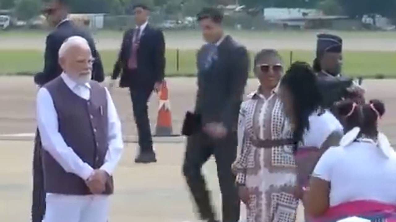 ನರೇಂದ್ರ ಮೋದಿ ಜೋಹಾನ್ಸ್ಬರ್ಗ್ ಏರ್ಪೋರ್ಟ್ನಲ್ಲಿ ಸ್ವಾಗತ ಪಡೆದಿರುವುದು