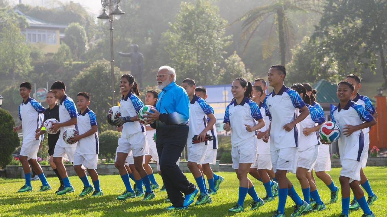 ಗ್ಯಾಂಗ್ಟಕ್ನಲ್ಲಿ ಮಕ್ಕಳೊಂದಿಗೆ ಫುಟ್ಬಾಲ್ ಆಡಿದ ಪ್ರಧಾನಿ ಮೋದಿ