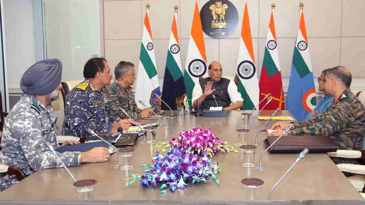 ನವದೆಹಲಿ, ಮೇ 9: ಭಾರತ-ಪಾಕಿಸ್ತಾನದ ಗಡಿಯಲ್ಲಿ ಹೆಚ್ಚುತ್ತಿರುವ ಉದ್ವಿಗ್ನತೆಯನ್ನು ಗಮನದಲ್ಲಿಟ್ಟುಕೊಂಡು ಕೇಂದ್ರ ರಕ್ಷಣಾ ಸಚಿವ ರಾಜನಾಥ್ ಸಿಂಗ್ (Rajnath Singh) ಇಂದು ಉನ್ನತ ಮಿಲಿಟರಿ ನಾಯಕತ್ವದೊಂದಿಗೆ ರಾಷ್ಟ್ರೀಯ ಭದ್ರತಾ ಸನ್ನಿವೇಶದ ಸಮಗ್ರ ಪರಿಶೀಲನೆ ನಡೆಸಿದರು. ಭಾರತೀಯ ಮಿಲಿಟರಿ ಸ್ಥಾಪನೆಗಳನ್ನು ಗುರಿಯಾಗಿಸುವ ಪಾಕಿಸ್ತಾನದ ಪ್ರಯತ್ನಗಳನ್ನು ಹಿಮ್ಮೆಟ್ಟಿಸಿದ ಒಂದು ದಿನದ ನಂತರ ಈ ಸಭೆಯನ್ನು ಕರೆಯಲಾಯಿತು. ಈ ಸಭೆಯಲ್ಲಿ ರಕ್ಷಣಾ ಸಿಬ್ಬಂದಿ ಮುಖ್ಯಸ್ಥ ಜನರಲ್ ಅನಿಲ್ ಚೌಹಾಣ್, ಸೇನಾ ಮುಖ್ಯಸ್ಥ ಜನರಲ್ ಉಪೇಂದ್ರ ದ್ವಿವೇದಿ, ವಾಯುಪಡೆಯ ಮುಖ್ಯಸ್ಥ ಮಾರ್ಷಲ್ ಎಪಿ ಸಿಂಗ್ ಮತ್ತು ನೌಕಾಪಡೆಯ ಮುಖ್ಯಸ್ಥ ಅಡ್ಮಿರಲ್ ದಿನೇಶ್ ತ್ರಿಪಾಠಿ ಭಾಗವಹಿಸಿದ್ದರು.