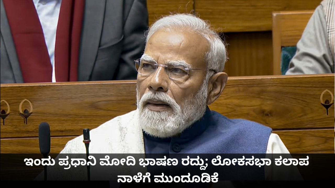 ಇಂದು ಲೋಕಸಭೆಯಲ್ಲಿ ರಾಷ್ಟ್ರಪತಿಗಳ ಭಾಷಣಕ್ಕೆ ಧನ್ಯವಾದ ನಿರ್ಣಯಕ್ಕೆ ತಮ್ಮ ಲೋಕಸಭಾ ಭಾಷಣಕ್ಕಾಗಿ ಪ್ರಧಾನಿ ಮೋದಿ ಸಂಸತ್ತಿಗೆ ಆಗಮಿಸಿದ್ದರು. ಆದರೆ ಬಿಜೆಪಿ ಸಂಸದರಾದ ಪಿಪಿ ಚೌಧರಿ ಮಾತನಾಡುತ್ತಿದ್ದಂತೆ ಸದನವನ್ನು ನಾಳೆಗೆ ಮುಂದೂಡಲಾಯಿತು. ಸರ್ಕಾರದ ಉನ್ನತ ಮೂಲಗಳ ಪ್ರಕಾರ, ರಾಷ್ಟ್ರಪತಿಗಳ ಭಾಷಣದ ಮೇಲಿನ ಚರ್ಚೆಯ ಸಮಯದಲ್ಲಿ ಕಳೆದ 2 ದಿನಗಳಿಂದ ಲೋಕಸಭೆಯಲ್ಲಿ ಪ್ರತಿಪಕ್ಷಗಳು ಕಲಾಪಕ್ಕೆ ಅಡ್ಡಿಪಡಿಸಿದ್ದರಿಂದ ಚರ್ಚೆ ನಡೆಯಲಿಲ್ಲ.