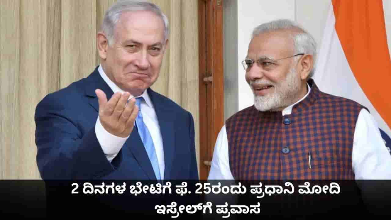 ಟೆಲ್ ಅವಿವ್, ಫೆಬ್ರವರಿ 16: ಪ್ರಧಾನಿ ನರೇಂದ್ರ ಮೋದಿ (PM Modi) ಫೆಬ್ರವರಿ 25ರಿಂದ 26ರವರೆಗೆ ಎರಡು ದಿನಗಳ ಭೇಟಿಗಾಗಿ ಇಸ್ರೇಲ್ಗೆ ಪ್ರಯಾಣಿಸಲಿದ್ದಾರೆ ಎಂದು ಇಸ್ರೇಲ್ ಪ್ರಧಾನಿ ಬೆಂಜಮಿನ್ ನೆತನ್ಯಾಹು ಇಂದು ಘೋಷಿಸಿದ್ದಾರೆ. ಅಮೇರಿಕನ್ ಯಹೂದಿ ಸಂಘಟನೆಗಳ ಅಧ್ಯಕ್ಷರ ಸಮ್ಮೇಳನವನ್ನು ಉದ್ದೇಶಿಸಿ ಮಾತನಾಡಿದ ನೆತನ್ಯಾಹು ಈ ಘೋಷಣೆ ಮಾಡಿದ್ದಾರೆ. “ಮುಂದಿನ ವಾರ ಇಲ್ಲಿಗೆ ಯಾರು ಬರುತ್ತಿದ್ದಾರೆ ಗೊತ್ತಾ? ಭಾರತದಿಂದ ನರೇಂದ್ರ ಮೋದಿ ಆಗಮಿಸುತ್ತಿದ್ದಾರೆ” ಎಂದು ನೆತನ್ಯಾಹು ಸಭೆಗೆ ತಿಳಿಸಿದ್ದಾರೆ.