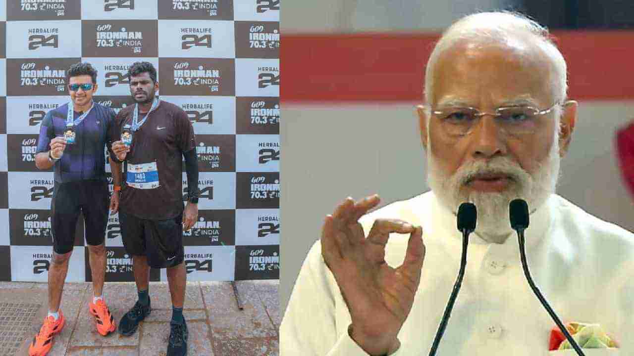 ಈ ವರ್ಷದ ಐರನ್ಮ್ಯಾನ್ನಲ್ಲಿ ತಮಿಳುನಾಡು ಬಿಜೆಪಿಯ ಮಾಜಿ ರಾಜ್ಯಾಧ್ಯಕ್ಷ ಕೆ.ಅಣ್ಣಾಮಲೈ (Annamalai) ಸಹ ಭಾಗವಹಿಸಿದ್ದು ವಿಶೇಷ. ಸಂಸದ ಸೂರ್ಯ ಅವರು ಸ್ಪರ್ಧೆಯ ಮೂರು ಕಠಿಣ ಹಂತಗಳಾದ 1.9 ಕಿ.ಮೀ ಈಜು, 90 ಕಿ.ಮೀ ಸೈಕ್ಲಿಂಗ್, ಮತ್ತು 21.1 ಕಿ.ಮೀ ಓಟವನ್ನು 7 ಗಂಟೆ 49 ನಿಮಿಷಗಳಲ್ಲಿ ಪೂರ್ಣಗೊಳಿಸಿದ್ದಾರೆ. ಈಜಲು ಸುಮಾರು 44 ನಿಮಿಷ, ಸೈಕ್ಲಿಂಗ್ಗೆ 3 ಗಂಟೆ 47 ನಿಮಿಷ ಮತ್ತು ಓಟಕ್ಕೆ 2 ಗಂಟೆ 54 ನಿಮಿಷಗಳನ್ನು ತೆಗೆದುಕೊಂಡರು. ಮತ್ತೊಂದೆಡೆ, ಅಣ್ಣಾಮಲೈ ಅವರು ಈ ಓಟವನ್ನು 8 ಗಂಟೆ 13 ನಿಮಿಷಗಳಲ್ಲಿ ಪೂರ್ಣಗೊಳಿಸಿದರು. ಇದೀಗ ಇವರ ಸಾಧನೆಗೆ ಮೋದಿ ಹರ್ಷ ವ್ಯಕ್ತಪಡಿಸಿದ್ದಾರೆ.