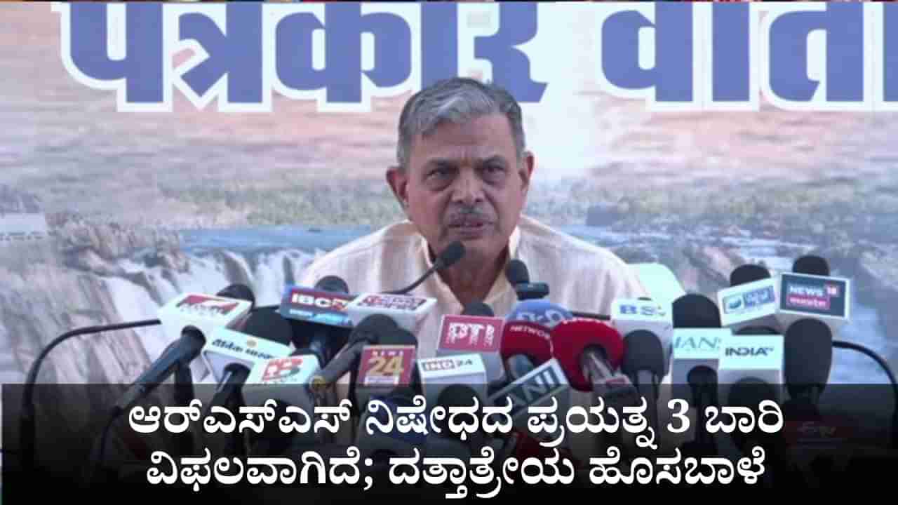 ನವದೆಹಲಿ, ನವೆಂಬರ್ 1: ರಾಷ್ಟ್ರೀಯ ಸ್ವಯಂಸೇವಕ ಸಂಘ (ಆರ್ಎಸ್ಎಸ್)ವನ್ನು ನಿಷೇಧಿಸುವ ವಿಪಕ್ಷಗಳ ಒತ್ತಾಯ ಹೆಚ್ಚಾಗುತ್ತಿದೆ. ಇದು ರಾಜಕೀಯ ಸ್ವರೂಪವನ್ನೂ ಪಡೆದಿದೆ. ಇದರ ಮಧ್ಯೆ ಆರ್ಎಸ್ಎಸ್ (RSS) ಪ್ರಧಾನ ಕಾರ್ಯದರ್ಶಿ ದತ್ತಾತ್ರೇಯ ಹೊಸಬಾಳೆ ಇಂದು ಈ ಬಗ್ಗೆ ಮೊದಲ ಅಧಿಕೃತ ಪ್ರತಿಕ್ರಿಯೆಯನ್ನು ನೀಡಿದ್ದಾರೆ. ಆರ್ಎಸ್ಎಸ್ ಅನ್ನು ಕಾನೂನುಬಾಹಿರಗೊಳಿಸುವ ಪ್ರಯತ್ನಗಳು ಹೊಸದಲ್ಲ, ಈ ಹಿಂದೆ ಪದೇ ಪದೇ ಈ ಪ್ರಯತ್ನ ವಿಫಲವಾಗಿದೆ ಎಂದಿದ್ದಾರೆ.
