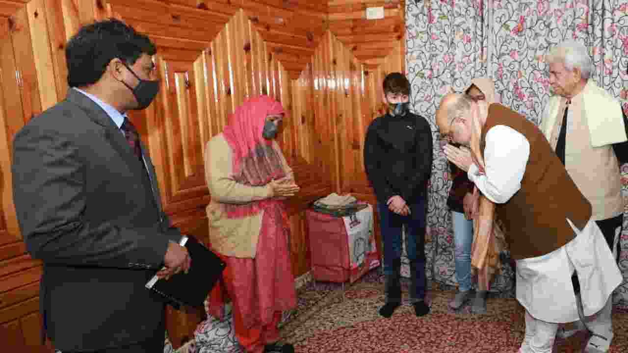 ಶ್ರೀನಗರ ತಲುಪಿದ ಅಮಿತ್ ಶಾ; ಉಗ್ರರ ದಾಳಿಯಿಂದ ಮೃತರಾದ ಪೊಲೀಸ್ ಅಧಿಕಾರಿಯ ಕುಟುಂಬ ಭೇಟಿ, ಸರ್ಕಾರಿ ಉದ್ಯೋಗದ ಭರವಸೆ