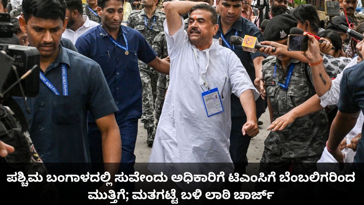 ಪಶ್ಚಿಮ ಬಂಗಾಳದಲ್ಲಿ ಸುವೇಂದು ಅಧಿಕಾರಿಗೆ ಟಿಎಂಸಿಗೆ ಬೆಂಬಲಿಗರಿಂದ ಮುತ್ತಿಗೆ; ಮತಗಟ್ಟೆ ಬಳಿ ಲಾಠಿ ಚಾರ್ಜ್
