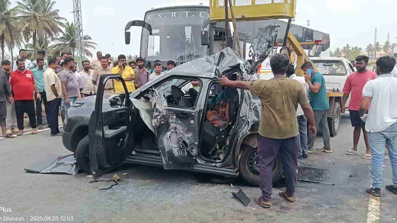 KA 57, F 1721 ನಂಬರಿನ ಸಂಖ್ಯೆಯ ಐರಾತ ಬಸ್, KA 09 MG 4263 ಟಾಟಾ ಪಂಚ್ ಕಾರಿಗೆ ಗುದ್ದಿದೆ. ವೇಗವಾಗಿ ಬರುತ್ತಿದ್ದ ಬಸ್ ಡಿಕ್ಕಿ ಹೊಡೆದ ರಭಸಕ್ಕೆ ನಾಲ್ವರು ಕಾರಿನಲ್ಲೇ ಉಸಿರು ಚೆಲ್ಲಿದ್ದಾರೆ. ಇನ್ನು ಕಾರು ನೋಡದ ಸ್ಥಿತಿಯಲ್ಲಿದೆ. ಇನ್ನು ಬಸ್ಗೆ ಮುಂಭಾಗ ಸ್ವಲ್ಪ ಪ್ರಮಾಣದಲ್ಲಿ ಹಾನಿಯಾಗಿದೆ ಅಷ್ಟೇ.