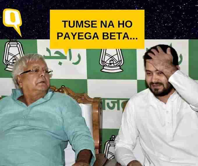 ಪ್ರತಿ ರಾಜಕೀಯ ಪಕ್ಷವೂ ತಾವು ಗೆಲ್ಲುವುದಾಗಿ ಹೇಳಿಕೆ ನೀಡುತ್ತಿವೆ ಆದರೆ ರಿಯಾಲಿಟಿ ಏನೆಂದರೆ ಅವೆಲ್ಲಾ ಪಕ್ಷಗಳು ಸೇರಿದ್ರೂ ಗೆಲುವು ಸಾಧ್ಯವಿಲ್ಲ ಎಂದು ಮಿಮ್ಸ್ ಮಾಡಲಾಗಿದೆ. ಅದರಲ್ಲಿ ಲಾಲು ಪ್ರಸಾದ್ ಯಾದವ್ ಹಾಗೂ ತೇಜಸ್ವಿ ಯಾದವ್ ನಡುವಿನ ಸಂಭಾಷಣೆ ನಡೆದಂತೆ ಪೋಸ್ಟರ್ ಬಳಸಲಾಗಿದ್ದು, ಅದರಲ್ಲಿ ತೇಜಸ್ವಿ ಯಾದವ್ ತಲೆ ಮೇಲೆ ಕೈಹೊತ್ತುಕೊಂಡರೆ ಲಾಲೂ ಮಗನಿಗೆ ಸಮಾಧಾನ ಮಾಡುತ್ತಾ ನಿನ್ನಿಂದ ಇದು ಸಾಧ್ಯವಾಗಲ್ಲ ಮಗನೇ ಎಂದು ಹೇಳುತ್ತಿರುವಂತೆ ಕ್ರಿಯೇಟ್ ಮಾಡಲಾಗಿದೆ.