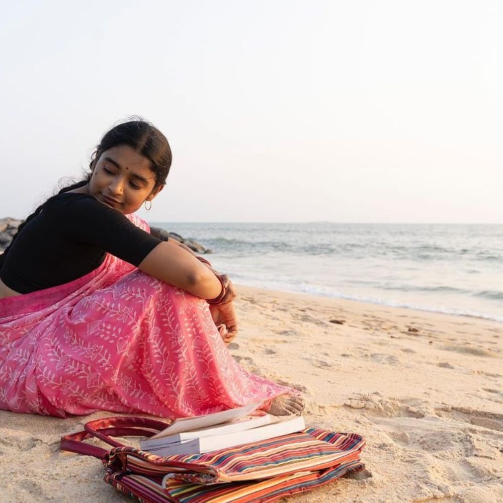 ಸಮುದ್ರದ ದಂಡೆಯ ಮೇಲೆ ಪುಸ್ತಕ ಚೀಲ ಇಟ್ಟು ಮುಳುಗುವ ಸೂರ್ಯನ ಚೈತ್ರಾ ನೋಡುತ್ತಿರುವ ದೃಶ್ಯವನ್ನು ಹೇಮಂತ್ ಹೇಗೆ ಹಲವು ಕೋನಗಳಲ್ಲಿ ಸೆರೆಹಿಡಿದಿದ್ದಾರೆಂಬುದು ಚಿತ್ರಗಳಲ್ಲಿದೆ.