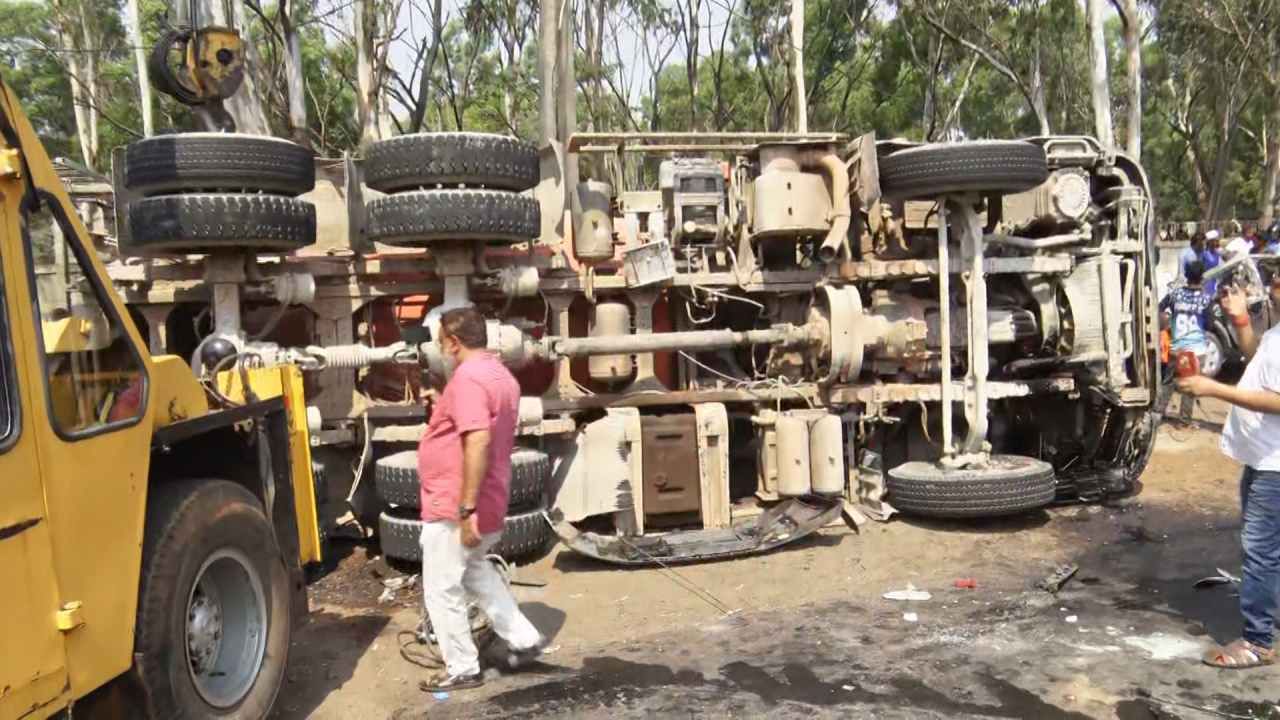 ಇತ್ತೀಚೆಗಷ್ಟೇ ಬೆಂಗಳೂರಿನ ಹೊರವಲಯದಲ್ಲಿ ಚಲಿಸುತ್ತಿದ್ದ ಕಾರಿನ ಮೇಲೆ ಕಂಟೈನರ್ ಲಾರಿ ಬಿದ್ದು ಒಂದೇ ಕುಟುಂಬದ 6 ಮಂದಿ ಮೃತಪಟ್ಟಿದ್ದರು. ಅದೇ ರೀತಿಯಲ್ಲೇ ಬೆಂಗಳೂರು-ಪುಣೆ ರಾಷ್ಟ್ರೀಯ ಹೆದ್ದಾರಿ ಬಳಿ ಸರ್ವಿಸ್ ರಸ್ತೆಯಲ್ಲಿ ಚಲಿಸುತ್ತಿದ್ದ ಕಾರಿನ ಮೇಲೆ ಕಾಂಕ್ರಿಟ್ ಮಿಕ್ಸರ್ ಲಾರಿ ಮುಗುಚಿ ಬಿದ್ದಿದೆ.