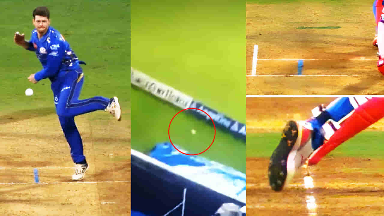ಸೋಷಿಯಲ್ ಮೀಡಿಯಾದಲ್ಲಿ ಮುಂಬೈ ಇಂಡಿಯನ್ಸ್ ವಿರುದ್ಧ ಕೇಳಿ ಬರುತ್ತಿರುವ ಮೊದಲ ಆರೋಪ ಮಿಚೆಲ್ ಸ್ಯಾಂಟ್ನರ್ ಅವರ ನೋಬಾಲ್. ಸೈಡ್ ಲೈನ್ಗೆ ಅವರ ಕಾಲು ತಾಗಿದ್ದರಿಂದ ಅದನ್ನು ಅಂಪೈರ್ ನೋಬಾಲ್ ನೀಡಬೇಕಿತ್ತು ಎಂದು ಅನೇಕರು ವಾದಿಸುತ್ತಿದ್ದಾರೆ. ಆದರೆ ಇಲ್ಲಿ ಸ್ಯಾಂಟ್ನರ್ ಅವರ ಮುಂಬದಿಯ ಕಾಲು ಸೈಡ್ ಲೈನ್ಗೆ ತಾಗಿರುವುದನ್ನು ಗಮನಿಸಬೇಕು. ಅಂದರೆ ರಿಟರ್ನ್ ಕ್ರೀಸ್ಗೆ (ಸೈಡ್ ಲೈನ್) ಅವರ ಹಿಂಬದಿಯ ಕಾಲು ತಾಗಿದರೆ ಮಾತ್ರ ನೋಬಾಲ್ ಎಂದು ಪರಿಗಣಿಸಲಾಗುತ್ತದೆ. ಇಲ್ಲಿ ಸ್ಯಾಂಟ್ನರ್ ಅವರ ಮುಂಬದಿಯ ಕಾಲು ಮಾತ್ರ ತಾಗಿದೆ. ಇದೇ ಎಸೆತದಲ್ಲಿ ಅವರ ಹಿಂಬದಿಯ ಕಾಲು ಎಲ್ಲಿತ್ತು ಎಂಬುದನ್ನು 2ನೇ ಚಿತ್ರದಲ್ಲಿ ನೋಡಬಹುದು. ಹಾಗೆಯೇ ಮಿಚೆಲ್ ಸ್ಟಾರ್ಕ್ ಅವರ ಹಿಂಬದಿಯ ಕಾಲು ಸೈಡ್ ಲೈನ್ಗೆ ತಾಗಿರುವುದಕ್ಕೆ ನೋ ಬಾಲ್ ನೀಡಲಾಗಿತ್ತು ಎಂಬುದನ್ನು ಸಹ ಇಲ್ಲಿ ಗಮನಿಸಬಹುದು. ಹೀಗಾಗಿ ಮಿಚೆಲ್ ಸ್ಯಾಂಟ್ನರ್ ಎಸೆದ ಚೆಂಡು ನೋಬಾಲ್ ಆಗಿರಲಿಲ್ಲ.