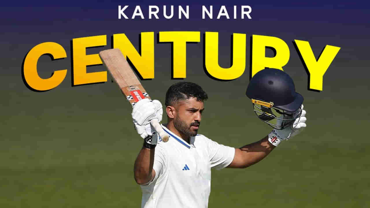 ಎಚ್ಚರಿಕೆಯಿಂದ ಬ್ಯಾಟಿಂಗ್ ಮಾಡಿದ ಕರುಣ್ ನಾಯರ್ ಮೊದಲ ದಿನದಾಟದಲ್ಲಿ 138 ಎಸೆತಗಳಲ್ಲಿ 86 ರನ್ ಗಳಿಸಿ ಅಜೇಯರಾಗಿ ಉಳಿದಿದ್ದರು. ಎರಡನೇ ದಿನವೂ ತಮ್ಮ ಇನ್ನಿಂಗ್ಸ್ ಮುಂದುವರಿಸಿದ ಅವರು ಎಂಟು ಬೌಂಡರಿ ಮತ್ತು ಒಂದು ಸಿಕ್ಸರ್ ಸೇರಿದಂತೆ 163 ಎಸೆತಗಳಲ್ಲಿ ಶತಕ ಬಾರಿಸಿದರು.