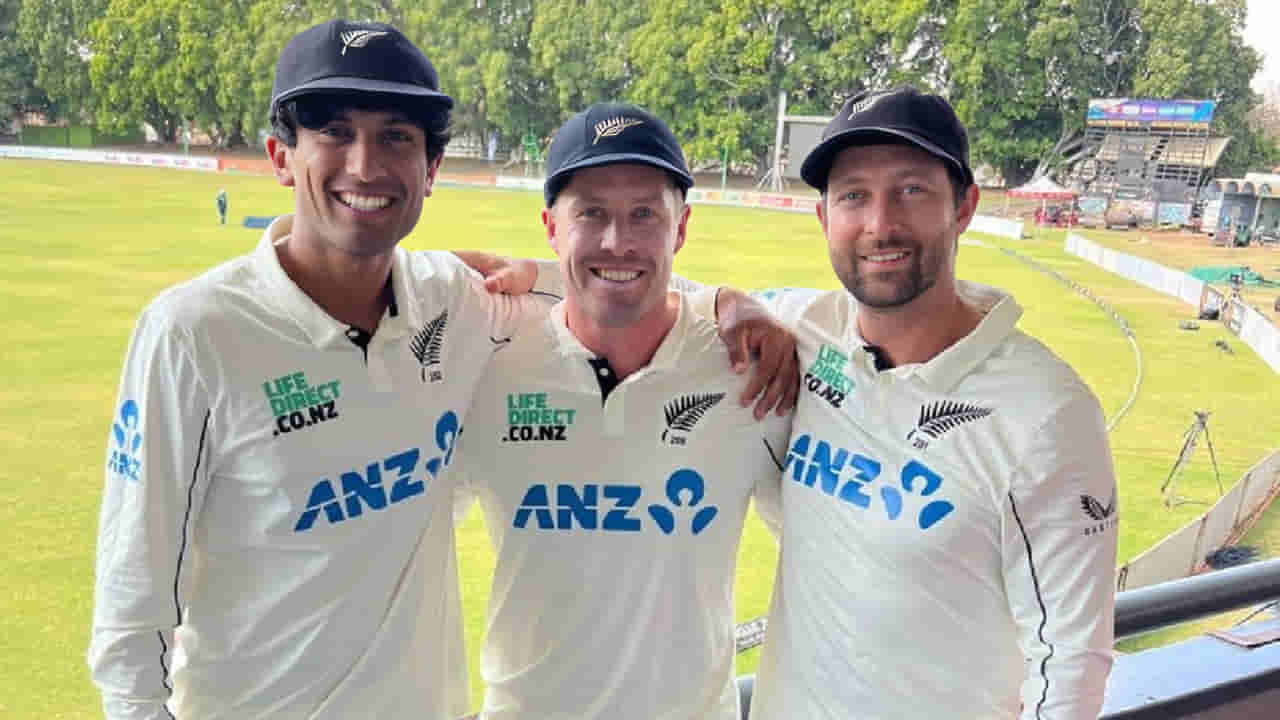 ಇದೀಗ ರಚಿನ್ ರವೀಂದ್ರ (165), ಡೆವೊನ್ ಕಾನ್ವೆ (153) ಹಾಗೂ ಹೆನ್ರಿ ನಿಕೋಲ್ಸ್ (150) ಝಿಂಬಾಬ್ವೆ ವಿರುದ್ಧದ 2ನೇ ಟೆಸ್ಟ್ ಪಂದ್ಯದ ಮೊದಲ ಇನಿಂಗ್ಸ್ನಲ್ಲಿ 150+ ರನ್ಗಳಿಸುವ ಈ ವಿಶ್ವ ದಾಖಲೆಯನ್ನು ಸರಿಗಟ್ಟಿದ್ದಾರೆ. ಅಲ್ಲದೆ ಟೆಸ್ಟ್ ಕ್ರಿಕೆಟ್ನಲ್ಲಿ ಈ ಸಾಧನೆ ಮಾಡಿದ ನ್ಯೂಝಿಲೆಂಡ್ನ ಮೊದಲ ತ್ರಿಮೂರ್ತಿಗಳೆಂಬ ಹೆಗ್ಗಳಿಕೆಯನ್ನು ತಮ್ಮದಾಗಿಸಿಕೊಂಡಿದ್ದಾರೆ.