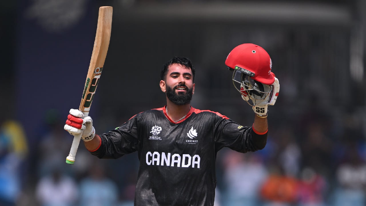 ನ್ಯೂಝಿಲೆಂಡ್ ವಿರುದ್ಧದ ಪಂದ್ಯದಲ್ಲಿ ಶತಕ ಸಿಡಿಸುವ ಮೂಲಕ 19 ವರ್ಷದ ಯುವರಾಜ್ ಸಮ್ರಾ ಟಿ20 ವಿಶ್ವಕಪ್​ ಇತಿಹಾಸದಲ್ಲೇ ಸೆಂಚುರಿ ಬಾರಿಸಿದ ಅತ್ಯಂತ ಕಿರಿಯ ಬ್ಯಾಟರ್ ಎನಿಸಿಕೊಂಡಿದ್ದಾರೆ. ಇನ್ನು ಯುವರಾಜ್ ಸಮ್ರಾ ಅವರ ಈ ಶತಕದ ನೆರವಿನೊಂದಿಗೆ ಕೆನಡಾ ತಂಡವು 20 ಓವರ್​ಗಳಲ್ಲಿ 4 ವಿಕೆಟ್ ಕಳೆದುಕೊಂಡು 173 ರನ್ ಕಲೆಹಾಕಿದೆ.