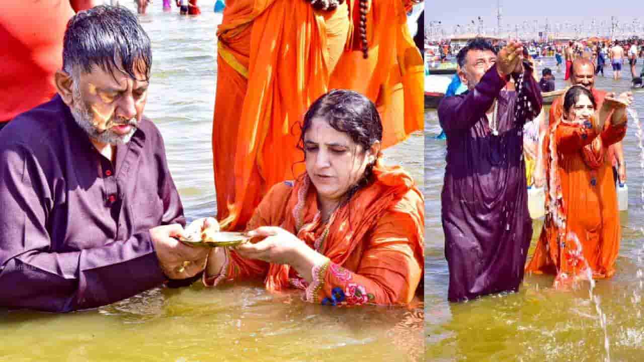 ನೊಣವಿನಕೆರೆ ಕಾಡಸಿದ್ದೇಶ್ವರ ಮಠದ ಕರಿವೃಷಭ ರಾಜದೇಶಿ ಕೇಂದ್ರ ಶಿವಯೋಗಿಶ್ವರ ಶಿವಾಚಾರ್ಯ ಸ್ವಾಮೀಜಿ ಅವರ ಜೊತೆಯಲ್ಲೇ ಡಿಕೆಶಿ ದಂಪತಿ ಮಹಾಕುಂಭಮೇಳದಕ್ಕೆ ತೆರಳಿ ತ್ರಿವೇಣಿ ಸಂಗಮದಲ್ಲಿ ಮಿಂದೆದ್ದರು.