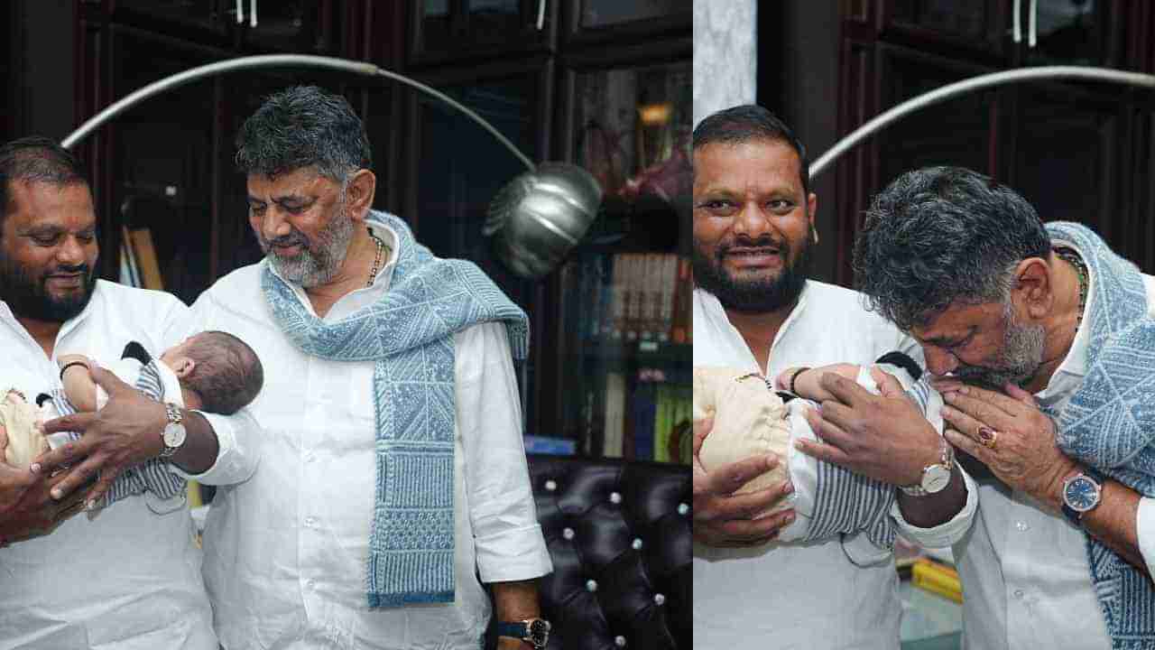 ಇಂದು (ಅಕ್ಟೋಬರ್ 31) ಬೆಂಗಳೂರಿನ ಡಿಕೆ ಶಿವಕುಮಾರ್ ಅವರ ಗೃಹ ಕಚೇರಿಯಲ್ಲಿ ನಾಮಕರಣ ಕಾರ್ಯಕ್ರಮ ನಡೆದಿದ್ದು, ಕೈ ಶಾಸಕನ ಮಗುವಿಗೆ ಡಿಕೆಶಿ 'ಶಿವಕುಮಾರ್' ಎಂದು ಎಂದು ನಾಮಕರಣ ಮಾಡಿದ್ದಾರೆ. ಬಳಿಕ ತಮ್ಮ ಹೆಸರಿಟ್ಟ ಮಗುವಿಗೆ ಶುಭ ಹಾರೈಸಿದ್ದಾರೆ.