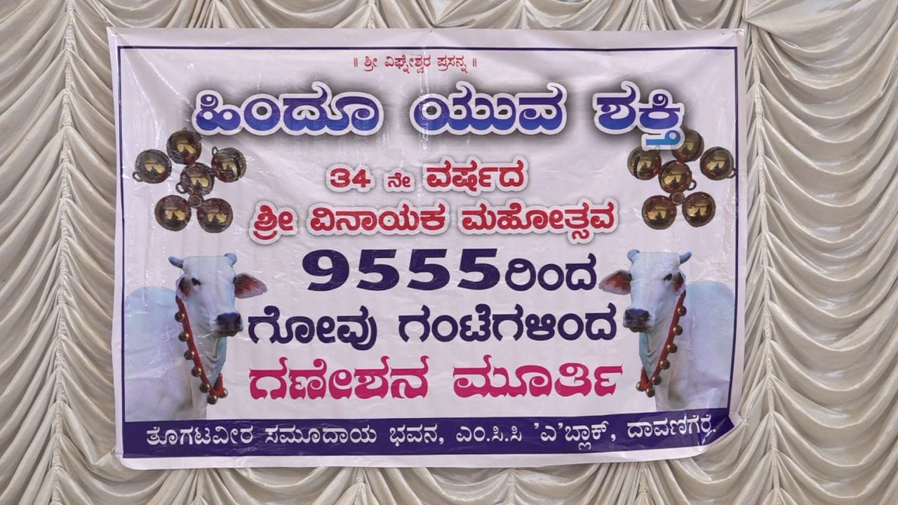 ದಾವಣಗೆರೆ ಜಿಲ್ಲೆಯಲ್ಲಿನ ಕೆಲ ಕುಟುಂಬಗಳು ಶತಮಾನಗಳಿಂದ ಗಣೇಶ ವಿಗ್ರಹಗಳನ್ನು ತಯಾರು ಮಾಡುತ್ತಿವೆ. ಈ ಕುಟುಂಬಗಳು ಸೇರಿಕೊಂಡು ಹಿಂದೂ ಯುವ ಶಕ್ತಿ ಸಮಿತಿ ರಚಿಸಿಕೊಂಡಿದ್ದು, ವಿವಿಧ ರೂಪಗಳಲ್ಲಿ ತಯಾರಿಸಿದ ಗಣೇಶ ವಿಗ್ರಹಗಳನ್ನು ಪ್ರತಿಷ್ಠಾಪಿಸುತ್ತಿವೆ. ಈ ಸಲ ನಂದಿ ಕೊರಳಲ್ಲಿ ಕಟ್ಟುವ ಗಂಟೆಯಿಂದ ಮಾಡಿದ ಗಣಪನನ್ನು ಪ್ರತಿಷ್ಠಾಪಿಸಿದೆ.