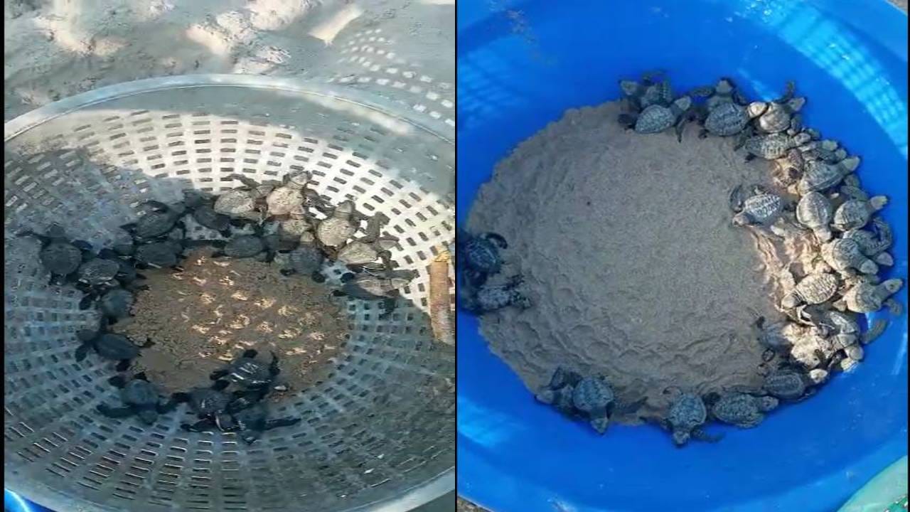 ಅರಣ್ಯಾಧಿಕಾರಿಗಳು ಮೊಟ್ಟೆಗಳನ್ನು ಸಂರಕ್ಷಣೆ ಮಾಡಿ, ಆಮೆ ಮರಿಗಳನ್ನ ಕಡಲು ಸೇರಿಸಿದ್ದಾರೆ.