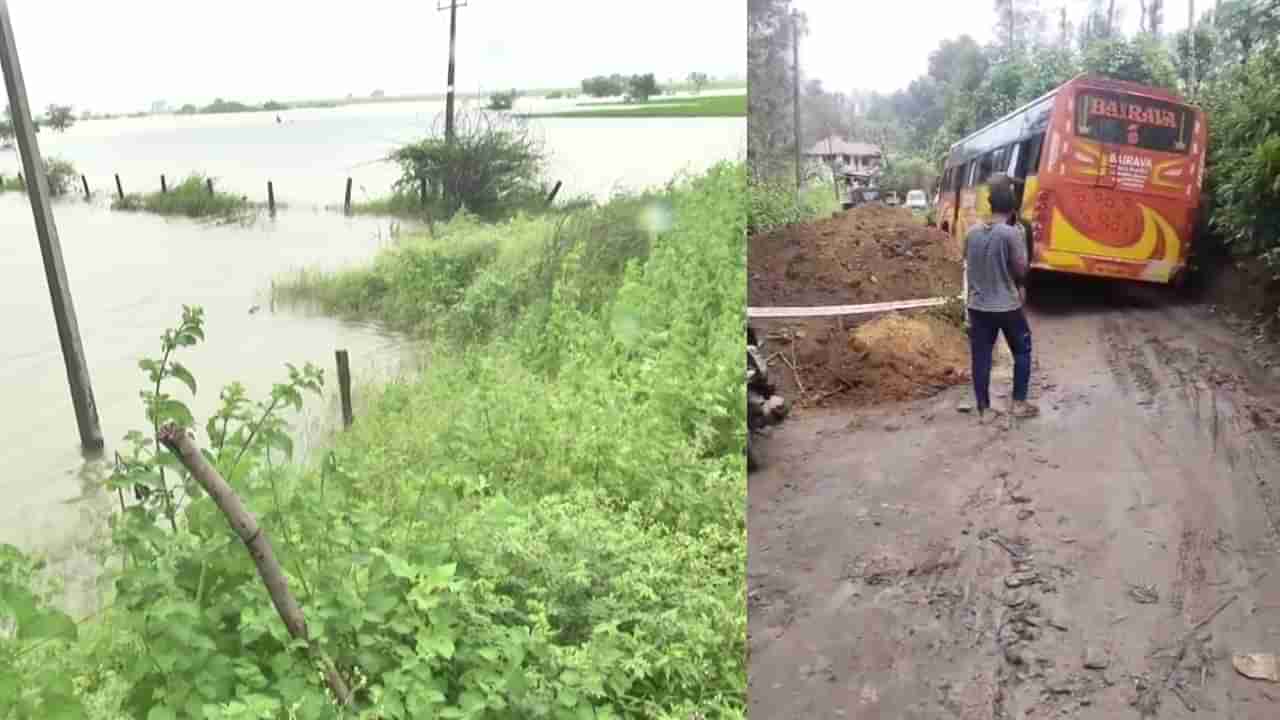 ಕೊಡಗಿನಲ್ಲಿ ನಿನ್ನೆ ಸುರಿದ ಭಾರೀ ಮಳೆಯಿಂದ ಜನಜೀವನ ಅಸ್ತವ್ಯಸ್ತವಾಗಿದೆ. ಮಡಿಕೇರಿ ತಾಲೂಕಿನ ಮರಗೋಡು ರಸ್ತೆ ಕೆಸರು ಮಯವಾಗಿದೆ. ಮಡಿಕೇರಿ-ಕತ್ತಲೆಕಾಡು -ಮರಗೋಡು ರಸ್ತೆಯಲ್ಲಿ ಖಾಸಗಿ ಬಸ್ ಒಂದು ಕೆಸರಿನಲ್ಲಿ ಸಿಲುಕಿದ್ದು, ಪ್ರಯಾಣಿಕರು ಪರದಾಡುವಂತಾಯಿತು.