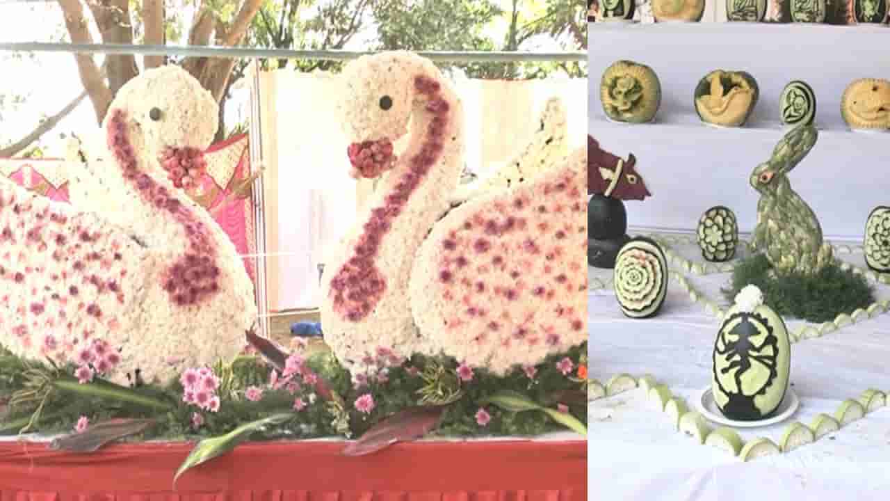ಇನ್ನು ರೈತರು ಬೆಳೆದ ತರಕಾರಿಗಳಲ್ಲಿ ನವಿಲನ್ನು ತಯಾರಿಸಲಾಗಿದೆ. ಥರ್ಮಾಕೋಲ್ನಿಂದ ಬುದ್ಧ, ಬಸವ ಅಂಬೇಡ್ಕರ್ ಹಾಗೂ ಸಾಲು ಮರದ ತಿಮ್ಮಕ್ಕನ ಮೂರ್ತಿಗಳನ್ನ ನಿರ್ಮಾಣ ಮಾಡಲಾಗಿದೆ. ಸಿರಿ ಧಾನ್ಯಗಳಾದ ರಾಗಿ, ಅಕ್ಕಿ, ಜೋಳ, ಸಜ್ಜೆ ಸೇರಿದಂತೆ ಇನ್ನಿತರ ಧಾನ್ಯಗಳನ್ನ ಬಳಕೆ ಮಾಡಿ ಮೂರ್ತಿಗಳನ್ನು ಸಿದ್ಧಪಡಿಸಲಾಗಿದೆ. ಇದರ ಜೊತೆಗೆ ತೋಟಗಾರಿಕೆ ಪಿತಾಮಹ ಮರಿಗೌಡರ ಚಿತ್ರವನ್ನ ರಂಗೋಲಿಯಲ್ಲಿ ಅದ್ಬುತವಾಗಿ ಬಿಡಿಸಲಾಗಿದೆ.
