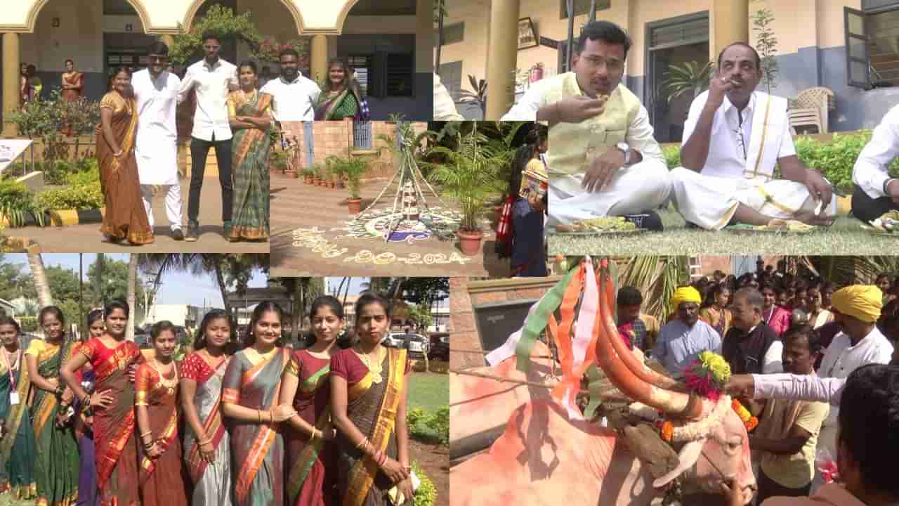 ಕಲರ್ ಕಲರ್ ಸೀರೆಯಲ್ಲಿ ಗಾಗಲ್ಸ್ ಹಾಕಿ ಪೋಜ್ನೀಡಿದ ವಿದ್ಯಾರ್ಥಿನಿಯರು, ಪಂಚೆಯಲ್ಲಿ ಮಿಂಚುತ್ತಿದ್ದ ವಿದ್ಯಾರ್ಥಿಗಳು ಸಂಕ್ರಾಂತಿ ಹಬ್ಬವನ್ನು ಎಂಜಾಯ್ ಮಾಡಿ ಹರ್ಷ ವ್ಯಕ್ತಪಡಿಸಿದರು..