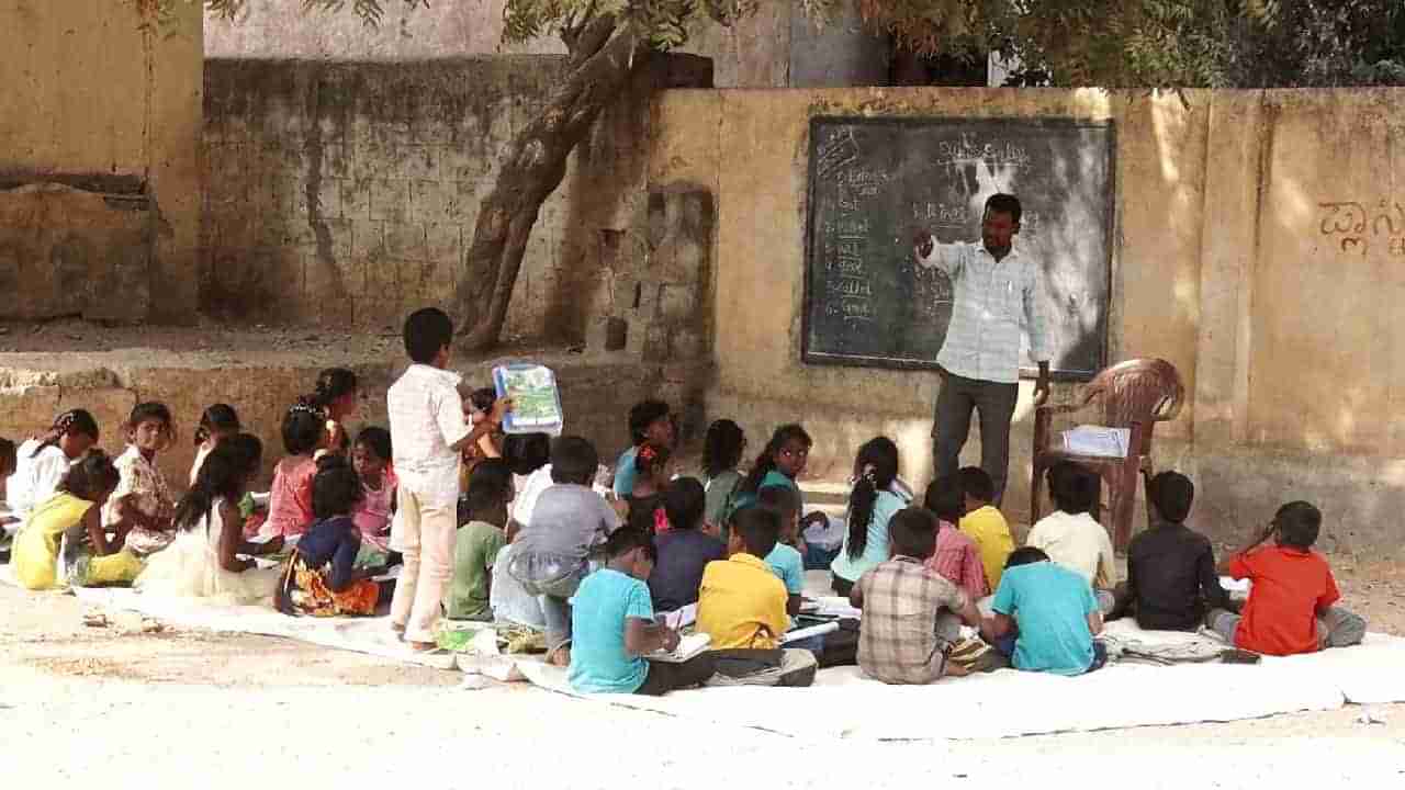 ಕೊಠಡಿಗಳ ಕೊರತೆಯಿಂದ ಹಾಗೂ ಇರುವ ಕೊಠಡಿಗಳು ಶಿಥಿಲಗೊಂಡ ಹಿನ್ನೆಲೆ ಮುಂಜಾಗ್ರತಾ ಕ್ರಮವಾಗಿ ಶಿಕ್ಷಕರು ಮಕ್ಕಳಿಗೆ ಬಯಲಲ್ಲಿ ಪಾಠ ಮಾಡುತ್ತಿದ್ದಾರೆ.