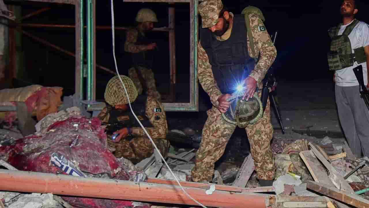 ಪಾಕಿಸ್ತಾನ ಆಕ್ರಮಿತ ಕಾಶ್ಮೀರದ ರಾಜಧಾನಿ ಮುಜಫರಾಬಾದ್ ಬಳಿ ಭಾರತೀಯ ಸೇನೆಯ ಕ್ಷಿಪಣಿ ದಾಳಿಯಿಂದ ಹಾನಿಗೊಳಗಾದ ಕಟ್ಟಡವನ್ನು ಪಾಕಿಸ್ತಾನ ಸೇನಾ ಸೈನಿಕರು ಪರಿಶೀಲಿಸಿದರು. ಪಿಒಕೆ ವ್ಯಾಪ್ತಿಯ ಸುಮಾರು 5 ಉಗ್ರರ ತಾಣಗಳ ಮೇಲೆ ಭಾರತ ದಾಳಿ ನಡೆಸಿದೆ.