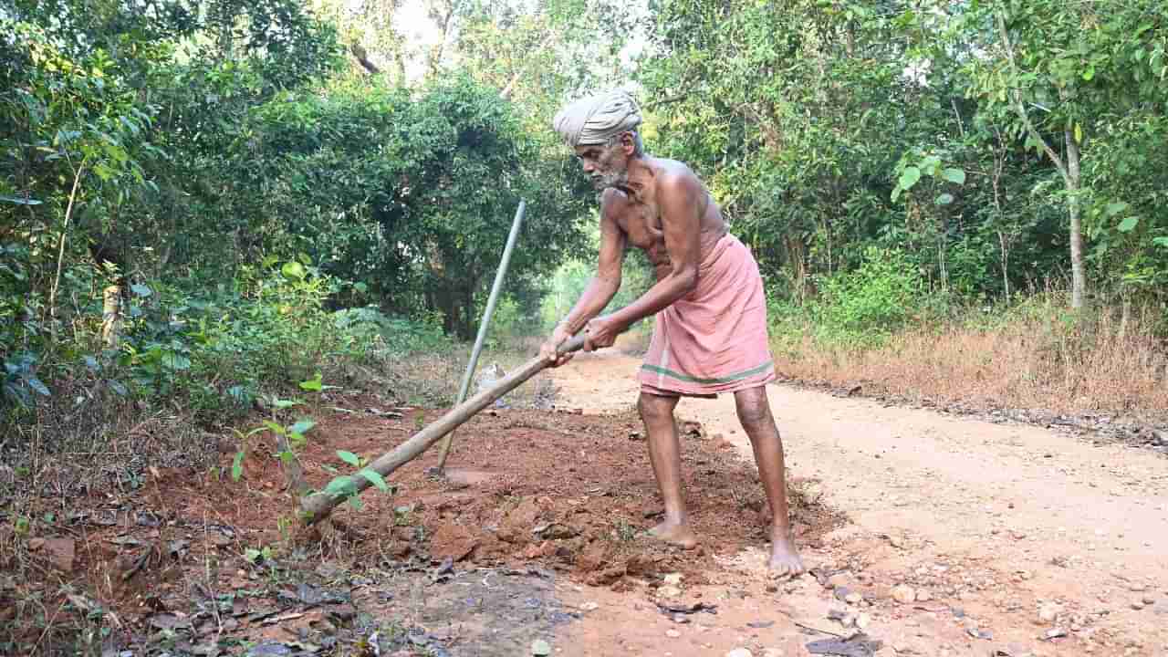 ವೃದ್ಧ ಶ್ರೀನಿವಾಸ ಮೂಲ್ಯ ಕಳೆದ 50 ವರ್ಷಗಳಿಂದ ಹಾರೆ ಪಿಕ್ಕಾಸು ಹಿಡಿದು ಏಕಾಂಗಿಯಾಗಿ 1.5ಕಿಮಿ ಮಣ್ಣಿನ ರಸ್ತೆಯನ್ನು ದುರಸ್ತಿ ಮಾಡುತ್ತಿದ್ದಾರೆ.