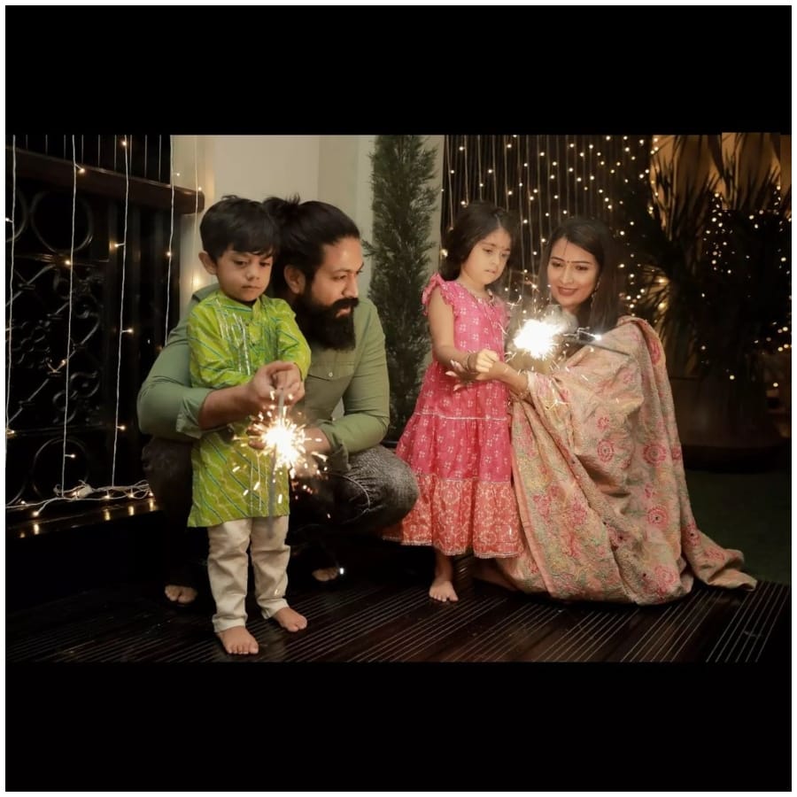 - Kannada News Photo gallery Yash and Radhika Pandit celebrate Deepavali 2022 with kids Ayra and Yatharv, Sandalwood News, Yash Latest News