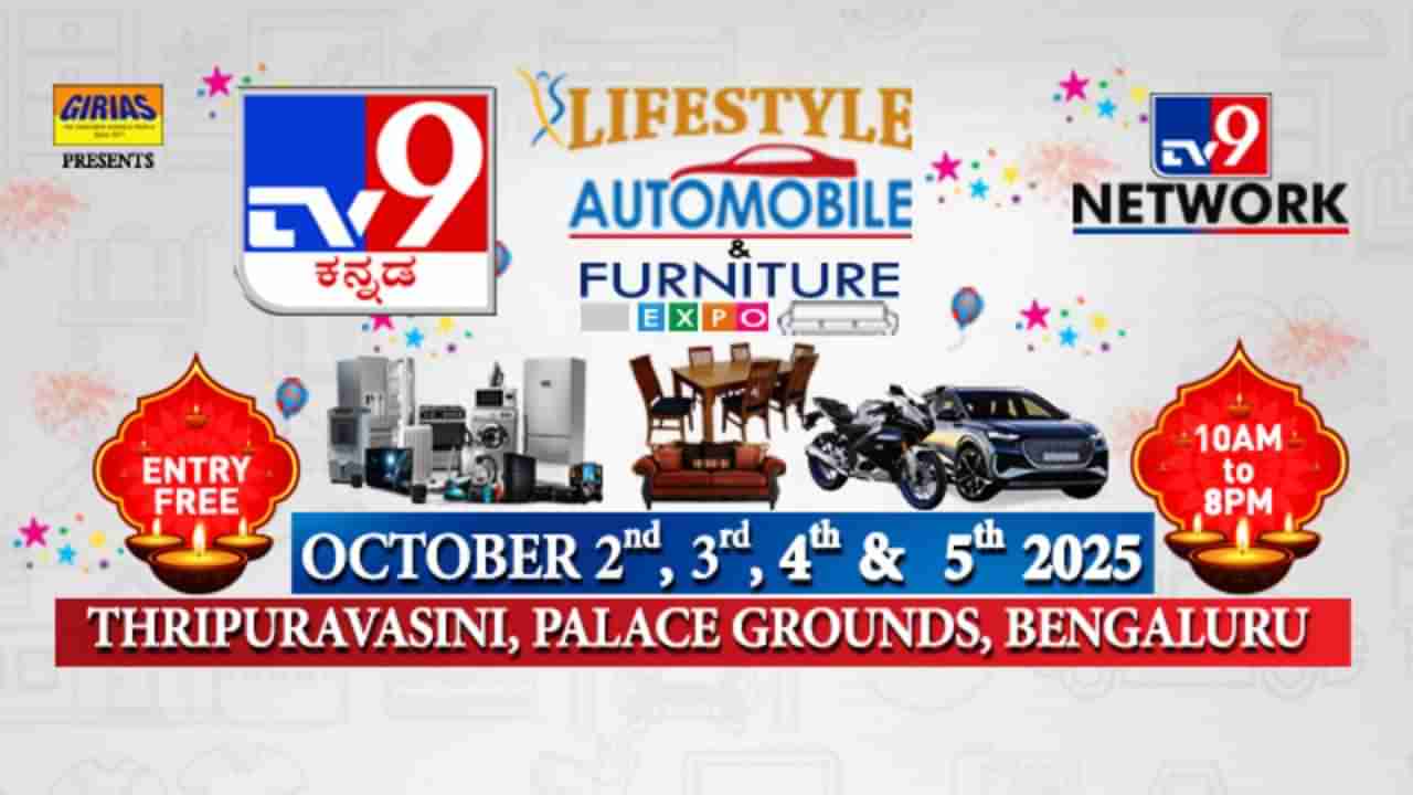 ಬೆಂಗಳೂರು, ಸೆಪ್ಟೆಂಬರ್ 30: ಕರ್ನಾಟಕದ ನಂಬರ್ ಒನ್ ಸುದ್ದಿ ವಾಹಿನಿಯಾಗಿರುವ ಟಿವಿ9 ಕನ್ನಡದಿಂದ ಮತ್ತೊಂದು ಮೆಗಾ ಎಕ್ಸ್ಪೋ ಆಯೋಜನೆಯಾಗಿದೆ. ಅರಮನೆ ಮೈದಾನದಲ್ಲಿ ಲೈಫ್ಸ್ಟೈಲ್, ಆಟೊಮೊಬೈಲ್ ಮತ್ತು ಫರ್ನಿಚರ್ ಎಕ್ಸ್ಪೋ ನಡೆಯಲಿದೆ. ಅಕ್ಟೋಬರ್ 2ರಿಂದ 5ರವರೆಗೆ ನಾಲ್ಕು ದಿನಗಳ ಕಾಲ ನಡೆಯುವ ಇದು ಬೆಂಗಳೂರಿನಲ್ಲಿ ಈ ವರ್ಷ ನಡೆಯುವ ಅತಿದೊಡ್ಡ ಮೇಳವೆನಿಸಿದೆ.