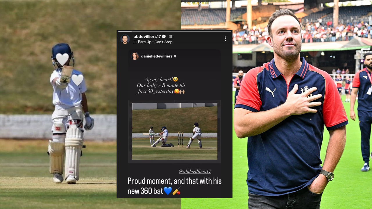 ದಕ್ಷಿಣ ಆಫ್ರಿಕಾದ ಮಾಜಿ ನಾಯಕ ಎಬಿ ಡಿವಿಲಿಯರ್ಸ್ (AB de Villiers) ಅವರ ಪುತ್ರ ಕೂಡ ಇದೀಗ ಕ್ರಿಕೆಟ್ ಜಗತ್ತಿಗೆ ಕಾಲಿರಿಸಿದ್ದು, ಎಳೆಯ ವಯಸ್ಸಿನಲ್ಲೇ ಅಬ್ಬರಿಸಲು ಶುರು ಮಾಡಿದ್ದಾರೆ. ವಾಸ್ತವವಾಗಿ ಎಬಿ ಡಿವಿಲಿಯರ್ಸ್ ತಮ್ಮ ಮಗನ ಯಶಸ್ಸನ್ನು ತಮ್ಮ ಸೋಶಿಯಲ್ ಮೀಡಿಯಾ ಖಾತೆಯಲ್ಲಿ ಹಂಚಿಕೊಳ್ಳುವ ಮೂಲಕ ಅಭಿಮಾನಿಗಳೊಂದಿಗೆ ಶುಭ ಸುದ್ದಿ ಹಂಚಿಕೊಂಡಿದ್ದಾರೆ. ಡಿವಿಲಿಯರ್ಸ್ ತಮ್ಮ ಇನ್ಸ್ಟಾಗ್ರಾಮ್ ಖಾತೆಯಲ್ಲಿ ತಮ್ಮ ಪತ್ನಿ ಡೇನಿಯಲ್ ಅವರ ಪೋಸ್ಟ್ ಅನ್ನು ರಿಪೋಸ್ಟ್ ಮಾಡಿದ್ದಾರೆ. ಅದರಲ್ಲಿ ಅವರ ಮಗ ತಮ್ಮ ಕ್ರಿಕೆಟ್ ವೃತ್ತಿಜೀವನದ ಮೊದಲ ಅರ್ಧಶತಕ ಬಾರಿಸಿರುವ ಮಾಹಿತಿ ಇದೆ.