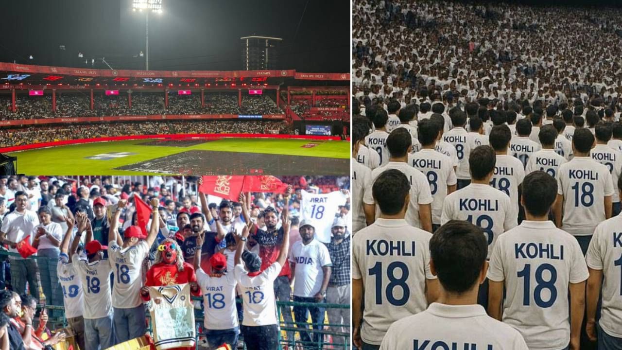 ಬೆಂಗಳೂರು (ಮೇ. 18): ಇಂಡಿಯನ್ ಪ್ರೀಮಿಯರ್ ಲೀಗ್ 2025 10 ದಿನಗಳ ವಿರಾಮದ ನಂತರ ಮತ್ತೆ ಶುರುವಾಗಿದೆ. ಶನಿವಾರ ರಾಯಲ್ ಚಾಲೆಂಜರ್ಸ್ ಬೆಂಗಳೂರು ಮತ್ತು ಕೋಲ್ಕತ್ತಾ ನೈಟ್ ರೈಡರ್ಸ್ (Royal Challengers Bengaluru vs Kolkata Knight Riders) ನಡುವಿನ ಪಂದ್ಯ ಬೆಂಗಳೂರಿನ ಎಂ ಚಿನ್ನಸ್ವಾಮಿ ಕ್ರೀಡಾಂಗಣದಲ್ಲಿ ಆಯೋಜಿಸಲಾಗಿತ್ತು. ಆದರೆ, ದುರಾದೃಷ್ಟವಶಾತ್ ಈ ಪಂದ್ಯ ಒಂದೂ ಎಸೆತ ಕಾಣದೆ ಮಳೆಯಿಂದ ರದ್ದಾಯಿತು. ಆದರೆ, ಈ ಪಂದ್ಯದಲ್ಲಿ ವಿಶೇಷವಾದದ್ದು ಸಂಭವಿಸಿತು. ಆರ್ಸಿಬಿ ಅಭಿಮಾನಿಗಳು ತಮ್ಮ ತಂಡದ ಕೆಂಪು ಮತ್ತು ಕಪ್ಪು ಜೆರ್ಸಿಯಲ್ಲಿ ಕಾಣಿಸಲಿಲ್ಲ, ಬದಲಾಗಿ ಬಿಳಿ ಬಟ್ಟೆಗಳಲ್ಲಿ ಕಂಗೊಳಿಸಿದರು. ಟೆಸ್ಟ್ ಕ್ರಿಕೆಟ್ನಿಂದ ವಿರಾಟ್ ಕೊಹ್ಲಿ ನಿವೃತ್ತಿ ಹೊಂದಿದ ಕಾರಣ ಅಭಿಮಾನಿಗಳಿಂದ ಇದು ಅವರಿಗೆ ವಿಶೇಷ ಗೌರವವಾಗಿದೆ.