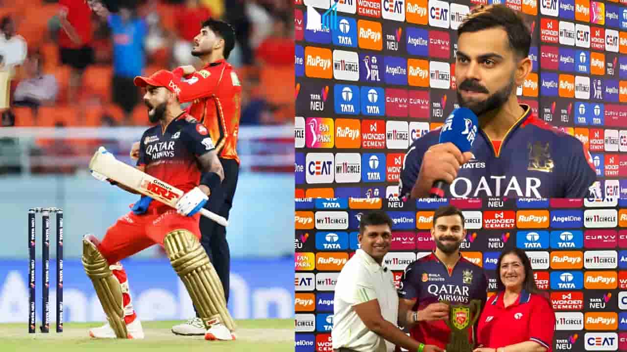 IPL 2025: ಇಂಡಿಯನ್ ಪ್ರೀಮಿಯರ್ ಲೀಗ್ ಸೀಸನ್-18ರ 37ನೇ ಪಂದ್ಯದಲ್ಲಿ ಪಂಜಾಬ್ ಕಿಂಗ್ಸ್ (PBKS) ವಿರುದ್ಧ ರಾಯಲ್ ಚಾಲೆಂಜರ್ಸ್ ಬೆಂಗಳೂರು (RCB) ತಂಡ ಭರ್ಜರಿ ಜಯ ಸಾಧಿಸಿದೆ. ಈ ಗೆಲುವಿನ ರೂವಾರಿ ವಿರಾಟ್ ಕೊಹ್ಲಿ (Virat Kohli). ಈ ಪಂದ್ಯದಲ್ಲಿ ಆರಂಭಿಕನಾಗಿ ಕಣಕ್ಕಿಳಿದ ಕಿಂಗ್ ಕೊಹ್ಲಿ 54 ಎಸೆತಗಳಲ್ಲಿ 1 ಸಿಕ್ಸ್ ಹಾಗೂ 7 ಫೋರ್ಗಳೊಂದಿಗೆ ಅಜೇಯ 74 ರನ್ ಬಾರಿಸಿದ್ದರು. ಈ ಭರ್ಜರಿ ಪ್ರದರ್ಶನದ ಫಲವಾಗಿ ವಿರಾಟ್ ಕೊಹ್ಲಿಗೆ ಪಂದ್ಯ ಶ್ರೇಷ್ಠ ಪ್ರಶಸ್ತಿ ಕೂಡ ಒಲಿಯಿತು.