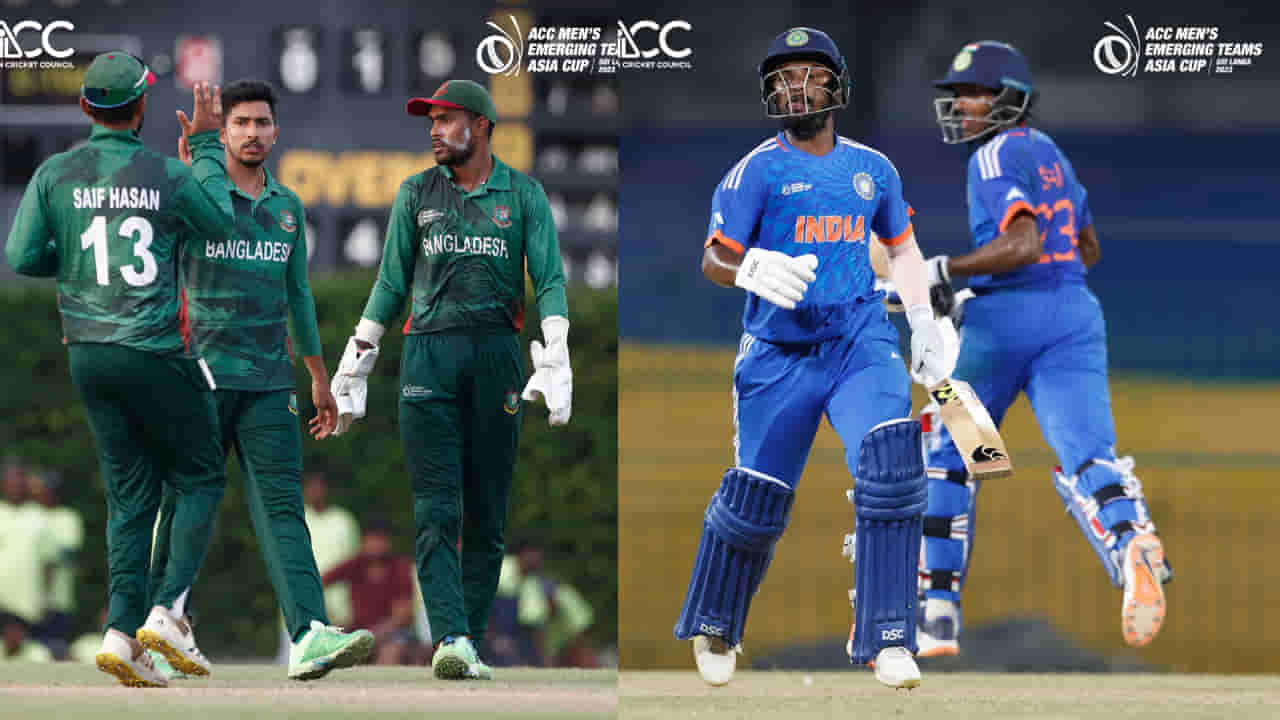 ಉದಯೋನ್ಮುಖ ಏಷ್ಯಾಕಪ್ನಲ್ಲಿ (Emerging Asia Cup 2023) ಇಂದು ಅಂದರೆ, ಜುಲೈ 21 ರ ಶುಕ್ರವಾರದಂದು ಸೆಮಿಫೈನಲ್ ಪಂದ್ಯಗಳು ನಡೆಯುತ್ತಿವೆ. ಇಂದಿನ ಮೊದಲ ಪಂದ್ಯದಲ್ಲಿ ಪಾಕಿಸ್ತಾನ ಎ ತಂಡ, ಶ್ರೀಲಂಕಾ ಎ ತಂಡವನ್ನು (Pakistan A vs Sri Lanka A) ಎದುರಿಸುತ್ತಿದ್ದರೆ, ಇಂದೇ ನಡೆಯುವ ಎರಡನೇ ಸೆಮಿಫೈನಲ್ ಪಂದ್ಯದಲ್ಲಿ ಭಾರತ ಎ ತಂಡ, ಬಾಂಗ್ಲಾದೇಶ ಎ ತಂಡವನ್ನು (India A vs Bangladesh A) ಎದುರಿಸುತ್ತಿದೆ. ಟೂರ್ನಿಯಲ್ಲಿ ಭಾರತ ಮತ್ತು ಪಾಕಿಸ್ತಾನ ತಂಡಗಳು ಬಿ ಗುಂಪಿನಲ್ಲಿ ಸ್ಥಾನ ಪಡೆದಿದ್ದು, ಭಾರತ ತನ್ನ ಗುಂಪಿನಲ್ಲಿ ಅಗ್ರಸ್ಥಾನದಲ್ಲಿದ್ದರೆ, ಪಾಕಿಸ್ತಾನ ತಂಡ ಎರಡನೇ ಸ್ಥಾನದಲ್ಲಿದೆ. ಇತ್ತ ಶ್ರೀಲಂಕಾ ಎ ಗುಂಪಿನಲ್ಲಿ ಅಗ್ರಸ್ಥಾನದಲ್ಲಿದ್ದರೆ, ಬಾಂಗ್ಲಾದೇಶ ಎರಡನೇ ಸ್ಥಾನದಲ್ಲಿದೆ. ಹೀಗಾಗಿ ಸೆಮಿಫೈನಲ್ನಲ್ಲಿ ಎದುರಾಳಿಗಳಿಗಿಂತ ಹೆಚ್ಚು ಬಲಿಷ್ಠರಾಗಿರುವ ಕಾರಣ ಭಾರತ ಮತ್ತು ಪಾಕಿಸ್ತಾನ ನಡುವಿನ ಫೈನಲ್ನ ನಿರೀಕ್ಷೆಯೂ ಹೆಚ್ಚಾಗಿದೆ.