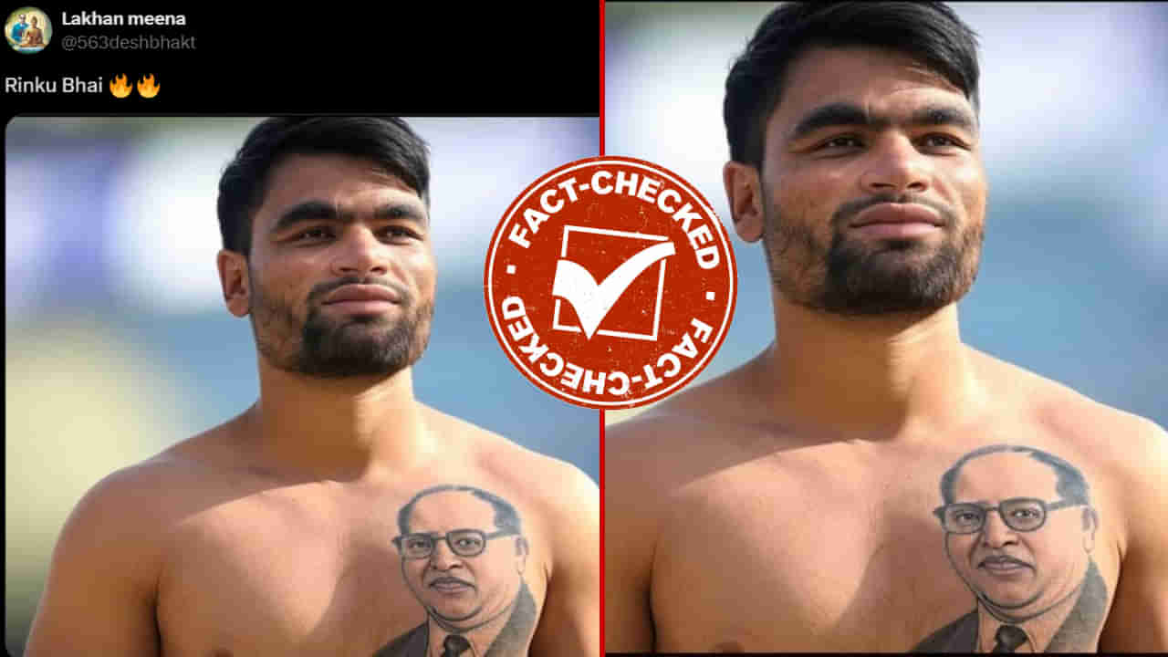 ರಿಂಕು ಸಿಂಗ್ ಅವರ ಈ ಚಿತ್ರವನ್ನು ಹಲವು ಬಳಕೆದಾರರು ಸಾಮಾಜಿಕ ಜಾಲತಾಣದಲ್ಲಿ ಹಂಚಿಕೊಂಡಿದ್ದಾರೆ. ಹಾಗಾದರೆ ರಿಂಕು ನಿಜಕ್ಕೂ ಬಿಆರ್ ಅಂಬೇಡ್ಕರ್ ಅವರ ಟ್ಯೂಟೂ ಹಾಕಿಸಿಕೊಂಡಿದ್ದಾರಾ?, ಈ ವೈರಲ್ ಫೋಟೋದ ನಿಜಾಂಶ ಏನು? ನೋಡೋಣ.