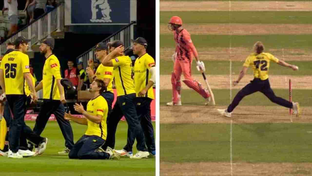 ನಾಥನ್ ಎಲ್ಲಿಸ್ ಎಸೆದ ಅಂತಿಮ ಓವರ್ನ ಮೊದಲ 3 ಎಸೆತಗಳಲ್ಲಿ 4 ರನ್ ಕಲೆಹಾಕಲಾಯಿತು. ಆದರೆ ನಾಲ್ಕನೇ ಎಸೆತದಲ್ಲಿ ಲ್ಯೂಕ್ ವುಡ್ ರನ್ ಔಟ್ ಆದರು. 5ನೇ ಎಸೆತದಲ್ಲಿ 2 ರನ್ ಗಳಿಸಿದರು. ಕೊನೆಯ ಒಂದು ಎಸೆತದಲ್ಲಿ 5 ರನ್ ಬೇಕಿತ್ತು. ನಾಥನ್ ಎಲ್ಲಿಸ್ ಎಸೆದ 6ನೇ ಎಸೆತದಲ್ಲಿ ಗ್ಲೀಸನ್ ಕ್ಲೀನ್ ಬೌಲ್ಡ್ ಆದರು. ಇತ್ತ ಹ್ಯಾಂಪ್ಶೈರ್ ಸಂಭ್ರಮಿಸುತ್ತಿದ್ದಂತೆ ಅಂಪೈರ್ ನೋಬಾಲ್ ಎಂದರು. ಮತ್ತೆ ಕೊನೆಯ ಎಸೆತದಲ್ಲಿ 3 ರನ್ ಗಳ ಗುರಿ ಪಡೆದ ಲಂಕಾಶೈರ್ ತಂಡವು 2 ರನ್ ಓಡಿದರು. ಇದರೊಂದಿಗೆ ಹ್ಯಾಂಪ್ಶೈರ್ ತಂಡವು 1 ರನ್ಗಳಿಂದ ರೋಚಕ ಜಯ ಸಾಧಿಸಿತು.