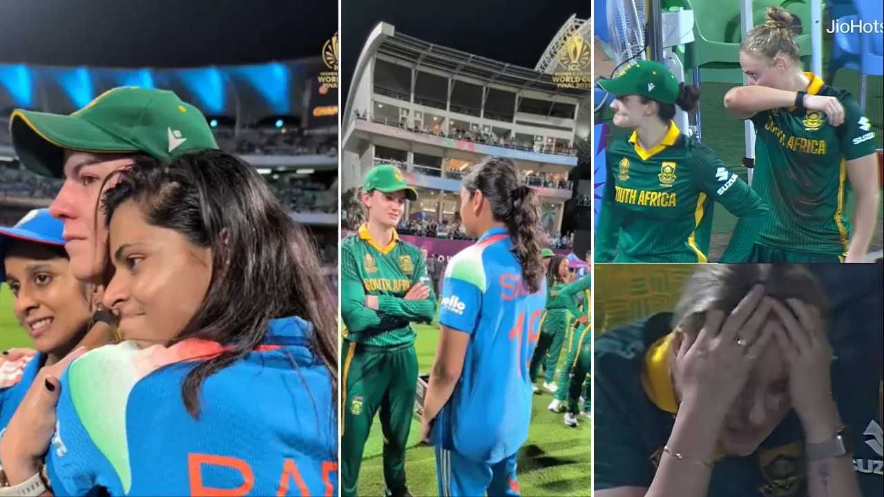 South Africa Women Players Crying: ಭಾರತ ಕ್ರಿಕೆಟ್ ತಂಡ ಫೈನಲ್ನಲ್ಲಿ ಸೋತ ನಂತರ, ದಕ್ಷಿಣ ಆಫ್ರಿಕಾದ ಆಟಗಾರರು ಅಳುತ್ತಿದ್ದರು. ನಂತರ, ಭಾರತೀಯ ಆಟಗಾರರು ಎಲ್ಲರ ಹೃದಯಗಳನ್ನು ಗೆದ್ದ ಒಂದು ಕೆಲಸವನ್ನು ಮಾಡಿದರು. ಭಾರತೀಯ ಆಟಗಾರ್ತಿಯರು ಆಫ್ರಿಕನ್ ಆಟಗಾರ್ತಿಯರನ್ನು ಅಪ್ಪಿಕೊಂಡು ಸಾಂತ್ವನ ಹೇಳಿದರು.
