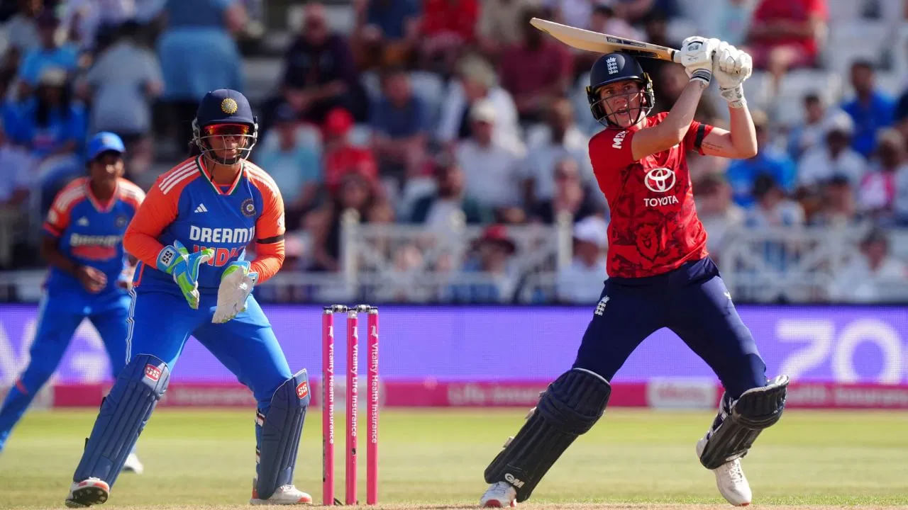 ನಾಟಿಂಗ್ಹ್ಯಾಮ್ನ ಟ್ರೆಂಟ್ ಬ್ರಿಡ್ಜ್ನಲ್ಲಿ ನಡೆದ ಭಾರತ ಹಾಗೂ ಇಂಗ್ಲೆಂಡ್ ಮಹಿಳಾ ತಂಡಗಳ (India Women vs England Women) ನಡುವಿನ ಐದು ಪಂದ್ಯಗಳ ಟಿ20 ಸರಣಿಯ ಮೊದಲ ಪಂದ್ಯದಲ್ಲಿ ಸ್ಮೃತಿ ಮಂಧಾನ (Smriti Mandhana) ನಾಯಕತ್ವದ ಭಾರತದ ಮಹಿಳಾ ತಂಡ, ಇಂಗ್ಲೆಂಡ್ ತಂಡವನ್ನು 97 ರನ್ಗಳಿಂದ ಸೋಲಿಸಿ ಸರಣಿಯಲ್ಲಿ ಗೆಲುವಿನ ಶುಭಾರಂಭ ಮಾಡಿತು. ಈ ಪಂದ್ಯದಲ್ಲಿ ಇಂಗ್ಲೆಂಡ್ನ ಪ್ರದರ್ಶನ ತುಂಬಾ ಕಳಪೆಯಾಗಿತ್ತು. ಬೌಲಿಂಗ್ನಲ್ಲಿ ಯಾವ ಬೌಲರ್ಗೂ ರನ್ಗಳಿಗೆ ಕಡಿವಾಣ ಹಾಕಲು ಸಾಧ್ಯವಾಗಲಿಲ್ಲ. ಇತ್ತ ಬ್ಯಾಟಿಂಗ್ನಲ್ಲೂ ನಾಯಕಿಯನ್ನು ಹೊರತುಪಡಿಸಿ ಮತ್ತ್ಯಾರಲ್ಲೂ ಗೆಲುವಿಗಾಗಿ ಹೋರಾಡವೂ ಮನೋಭಾವ ಕಂಡುಬರಲಿಲ್ಲ. ಇದರಿಂದಾಗಿ ಆತಿಥೇಯ ತಂಡ ಹೀನಾಯ ಸೋಲನ್ನು ಎದುರಿಸಬೇಕಾಯಿತು. ಏತನ್ಮಧ್ಯೆ, ಮೊದಲ ಟಿ20 ಪಂದ್ಯವನ್ನು ಸೋತಿರುವ ಇಂಗ್ಲೆಂಡ್ ತಂಡಕ್ಕೆ ಮತ್ತೊಂದು ಆಘಾತ ಎದುರಾಗಿದ್ದು ಅಂತರರಾಷ್ಟ್ರೀಯ ಕ್ರಿಕೆಟ್ ಮಂಡಳಿಯು ಇಂಗ್ಲೆಂಡ್ ತಂಡದ ಎಲ್ಲಾ ಆಟಗಾರ್ತಿಯರಿಗೆ ದಂಡ ವಿಧಿಸಿದೆ.