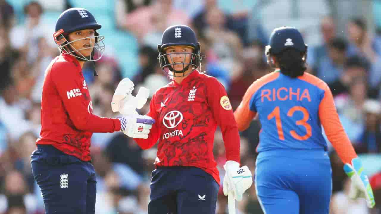 ಲಂಡನ್ನ ಕೆನ್ನಿಂಗ್ಟನ್ ಓವಲ್ ಮೈದಾನದಲ್ಲಿ ನಡೆದ ಭಾರತ ಮಹಿಳಾ ತಂಡದ ವಿರುದ್ಧದ 3ನೇ ಟಿ20 ಪಂದ್ಯದಲ್ಲಿ ಇಂಗ್ಲೆಂಡ್ ಮಹಿಳಾ ತಂಡವು ರೋಚಕ ಜಯ ಸಾಧಿಸಿದೆ. ಈ ಪಂದ್ಯದಲ್ಲಿ ಟಾಸ್ ಗೆದ್ದ ಇಂಗ್ಲೆಂಡ್ ತಂಡದ ನಾಯಕಿ ಬ್ಯಾಟಿಂಗ್ ಆಯ್ದುಕೊಂಡಿದ್ದರು. ಅದರಂತೆ ಇನಿಂಗ್ಸ್ ಆರಂಭಿಸಿದ ಆಂಗ್ಲರ ಪಡೆಗೆ ಸೋಫಿಯಾ ಡಂಕ್ಲಿ ಹಾಗೂ ವ್ಯಾಟ್ ಹಾಡ್ಜ್ ಭರ್ಜರಿ ಆರಂಭ ಒದಗಿಸಿದ್ದರು.