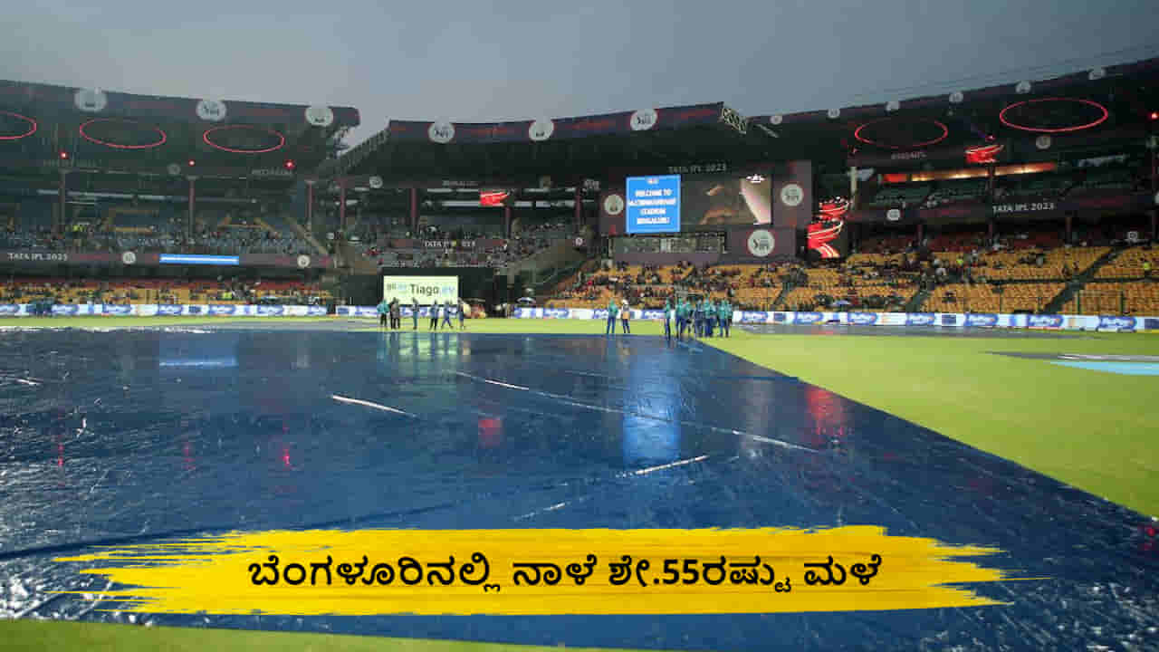 ಮೇಲೆ ಹೇಳಿದಂತೆ ಬೆಂಗಳೂರಿನಲ್ಲಿ ಕಳೆದ 1 ವಾರದಿಂದ ಉತ್ತಮವಾಗಿ ಮಳೆಯಾಗುತ್ತಿದೆ. ಹೀಗಾಗಿ ನಗರದಲ್ಲಿ ತಾಪಮಾನ ಕೊಂಚ ತಗ್ಗಿದೆ. ಇಷ್ಟು ದಿನ ಬೆಂಗಳೂರಿನಲ್ಲಿ ಮಳೆ ಬರಲಿ ಎಂದು ಆಶಿಸುತ್ತಿದ್ದ ಕ್ರಿಕೆಟ್ ಅಭಿಮಾನಿಗಳು ನಾಳೆ ಮಾತ್ರ ಮಳೆ ಬಾರದಿರಲಿ ಎಂದು ಬೇಡಿಕೊಳ್ಳುತ್ತಿದ್ದಾರೆ. ಇನ್ನು ಅಕ್ಯುವೆದರ್ ಪ್ರಕಾರ ಭಾನುವಾರದಂದು ನಗರದಲ್ಲಿ ಮೋಡ ಕವಿದ ವಾತಾವರಣವಿದ್ದು, ಮಧ್ಯಾಹ್ನದ ವೇಳೆಗೆ ಗುಡುಗು ಸಹಿತ ಮಳೆಯಾಗುವ ನಿರೀಕ್ಷೆಯಿದೆ. ಅಲ್ಲದೆ ಪಂದ್ಯವು ರಾತ್ರಿ 7.30 ಕ್ಕೆ ಪ್ರಾರಂಭವಾಗಲ್ಲಿದ್ದು, ಈ ವೇಳೆಯೂ ಅಂದರೆ ಸಂಜೆಯೂ ಗುಡುಗು ಸಹಿತ ಮಳೆಯಾಗುವ ಸಾಧ್ಯತೆ ಇದೆ. ಹಾಗೆಯೇ ನಾಳೆ ಶೇ.55ರಷ್ಟು ಮಳೆಯಾಗುವ ಸಾಧ್ಯತೆ ಇದೆ ಎಂದು ವರದಿಯಾಗಿದೆ.