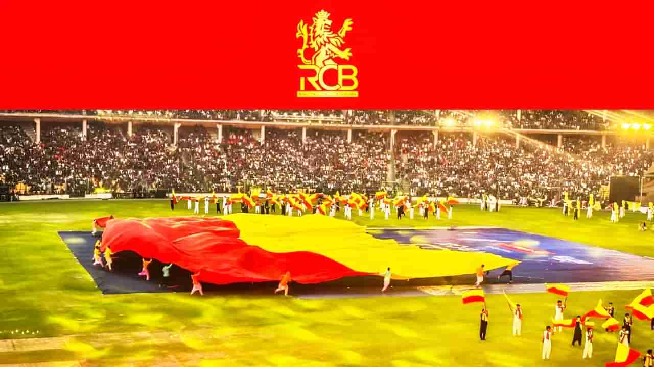 ಇವೆಲ್ಲದರ ಜೊತೆಗೆ ಮೈದಾನದಲ್ಲಿ ಕನ್ನಡ ಬಾವುಟ ಕೂಡ ರಾರಾಜಿಸಿದೆ. ಗಾಯಕ ಆಲ್ ಓಕೆ ಕನ್ನಡ ಹಾಡು ಹಾಡುತ್ತಿದ್ದಂತೆ ಚಿನ್ನಸ್ವಾಮಿ ಮೈದಾನದಲ್ಲಿ ಕೆಂಪು ಮತ್ತು ಹಳದಿ ಧ್ವಜ ಕಾಣಿಸಿಕೊಂಡಿದೆ. ಒಂದಾರ್ಥದಲ್ಲಿ ಇದೇ ಮೊದಲ ಬಾರಿಗೆ ಆರ್ಸಿಬಿ ಅಂಗಳವು ಕನ್ನಡತನದಿಂದ ಕೂಡಿತ್ತು ಎನ್ನಬಹುದು.