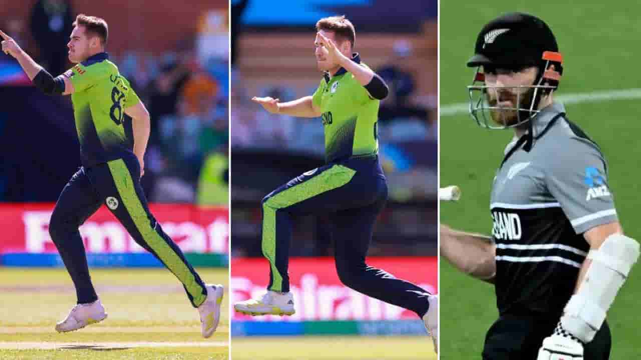 ಐಸಿಸಿ ಟಿ20 ವಿಶ್ವಕಪ್ನಲ್ಲಿ (T20 World Cup) ಎರಡನೇ ಹ್ಯಾಟ್ರಿಕ್ ವಿಕೆಟ್ ದಾಖಲೆ ಸೃಷ್ಟಿಯಾಗಿದೆ. ಅಡಿಲೇಡ್ನ ಅಡಿಲೇಡ್ ಓವಲ್ ಮೈದಾನದಲ್ಲಿ ನಡೆಯುತ್ತಿರುವ ನ್ಯೂಜಿಲೆಂಡ್ ಹಾಗೂ ಐರ್ಲೆಂಡ್ (New Zealand vs Ireland) ನಡುವಣ ಪಂದ್ಯದಲ್ಲಿ ಐರಿಶ್ ಬೌಲರ್ ಜೋಶ್ವಾ ಲಿಟಲ್ (Joshua Little) ಈ ವಿಶೇಷ ಸಾಧನೆ ಮಾಡಿದ್ದಾರೆ. ಪಂದ್ಯದ 19ನೇ ಓವರ್ನಲ್ಲಿ ಕೇನ್ ವಿಲಿಯಮ್ಸನ್, ಜೇಮ್ಸ್ ನೀಶಮ್ ಹಾಗೂ ಮಿಚೆಲ್ ಸ್ಯಾಂಟನರ್ ವಿಕೆಟ್ ಕೀಳುವ ಟಿ20 ವಿಶ್ವಕಪ್ 2022 ರಲ್ಲಿ ಹ್ಯಾಟ್ರಿಕ್ ವಿಕೆಟ್ ಪಡೆದ ಎರಡನೇ ಬೌಲರ್ ಎನಿಸಿಕೊಂಡರು. ಇದಕ್ಕೂ ಮುನ್ನ ಅರ್ಹತಾ ಸುತ್ತಿನ ಶ್ರೀಲಂಕಾ ವಿರುದ್ಧದ ಪಂದ್ಯದಲ್ಲಿ ಯುಎಇ ಬೌಲರ್ ಕಾರ್ತಿಕ್ ಮೇಯಿಯಪ್ಪನ್ ಈ ಸಾಧನೆ ಮಾಡಿದ್ದರು. ಒಟ್ಟಾರೆಯಾಗಿ ಪುರುಷರ ಟಿ20 ವಿಶ್ವಕಪ್ ಇತಿಹಾಸದಲ್ಲಿ ಹ್ಯಾಟ್ರಿಕ್ ವಿಕೆಟ್ ಪಡೆದ ಆರನೇ ಬೌಲರ್ ಜೋಶ್ವಾ ಲಿಟಲ್ ಆಗಿದ್ದಾರೆ.